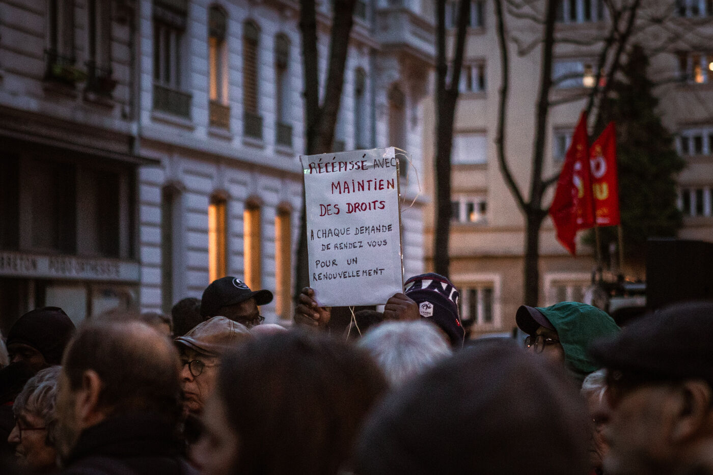 Following the decision of the Prefecture of Rhône to cancel all appointments for renewal of residence permits (2500 applications) and first applications (700), a protest rally in front of the Prefecture of Rhône organized by Collectif Migrants Croix Rousse took place in Lyon on February 21, 2025.