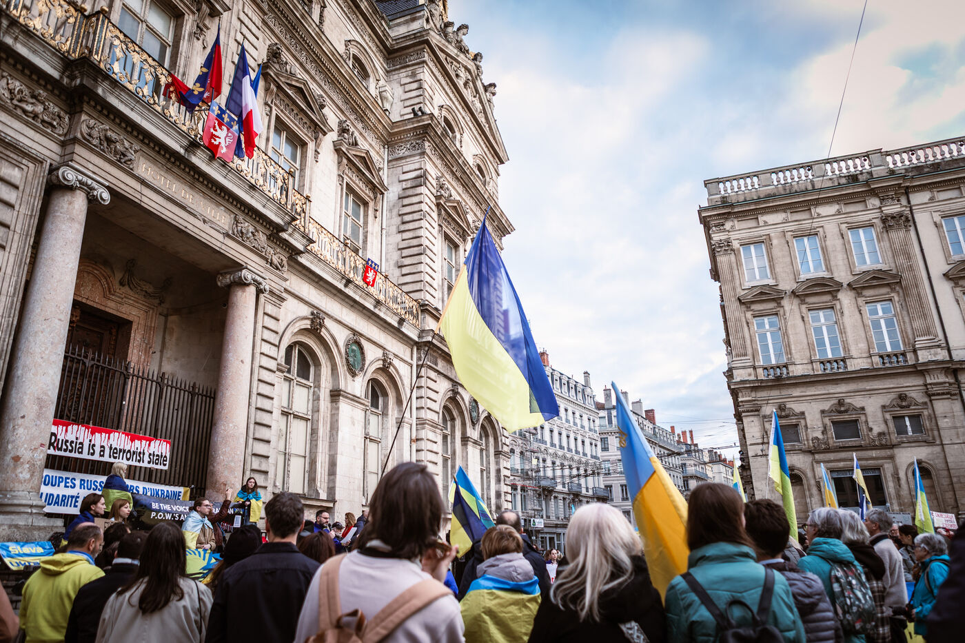 A rally on the occasion of the week of solidarity with the Ukrainian people’s resistance organized by the Collectif 69 of support to the Ukrainian people took place in Lyon, France on 23 February 2025.