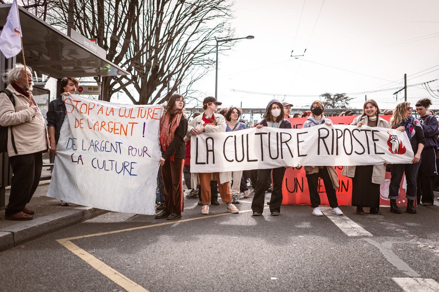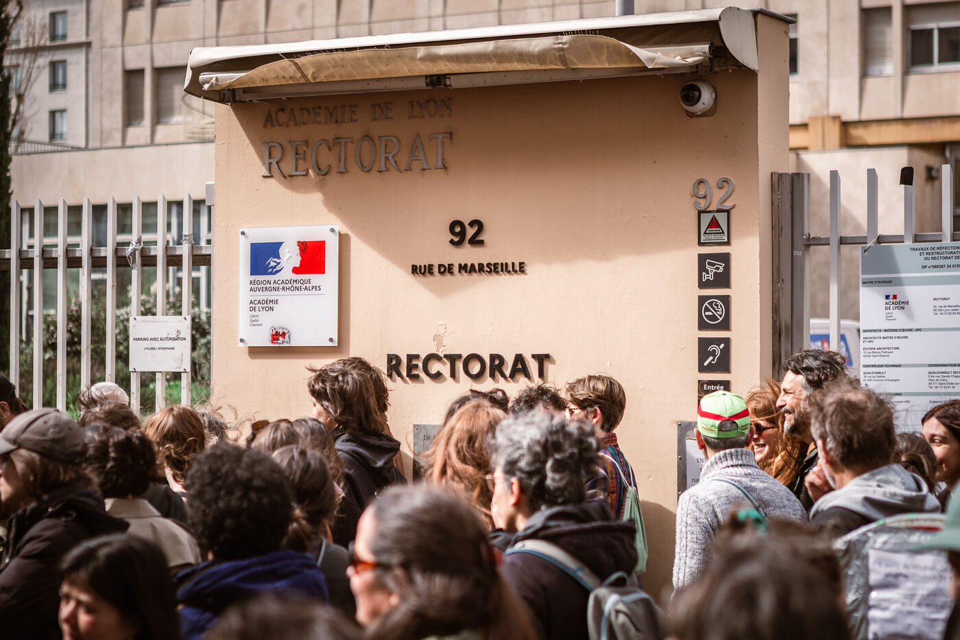 A mobilization of the unions of culture against the budget cuts took place in front of the rectorate in Lyon, France on March 20, 2025. This was followed by a demonstration against the reform of social security, carried out by the CGT pensions from Place Jean Macé.