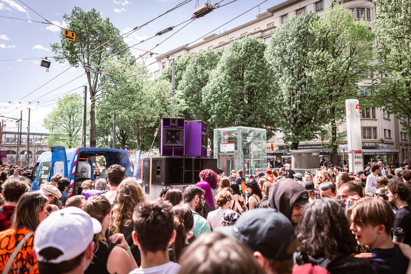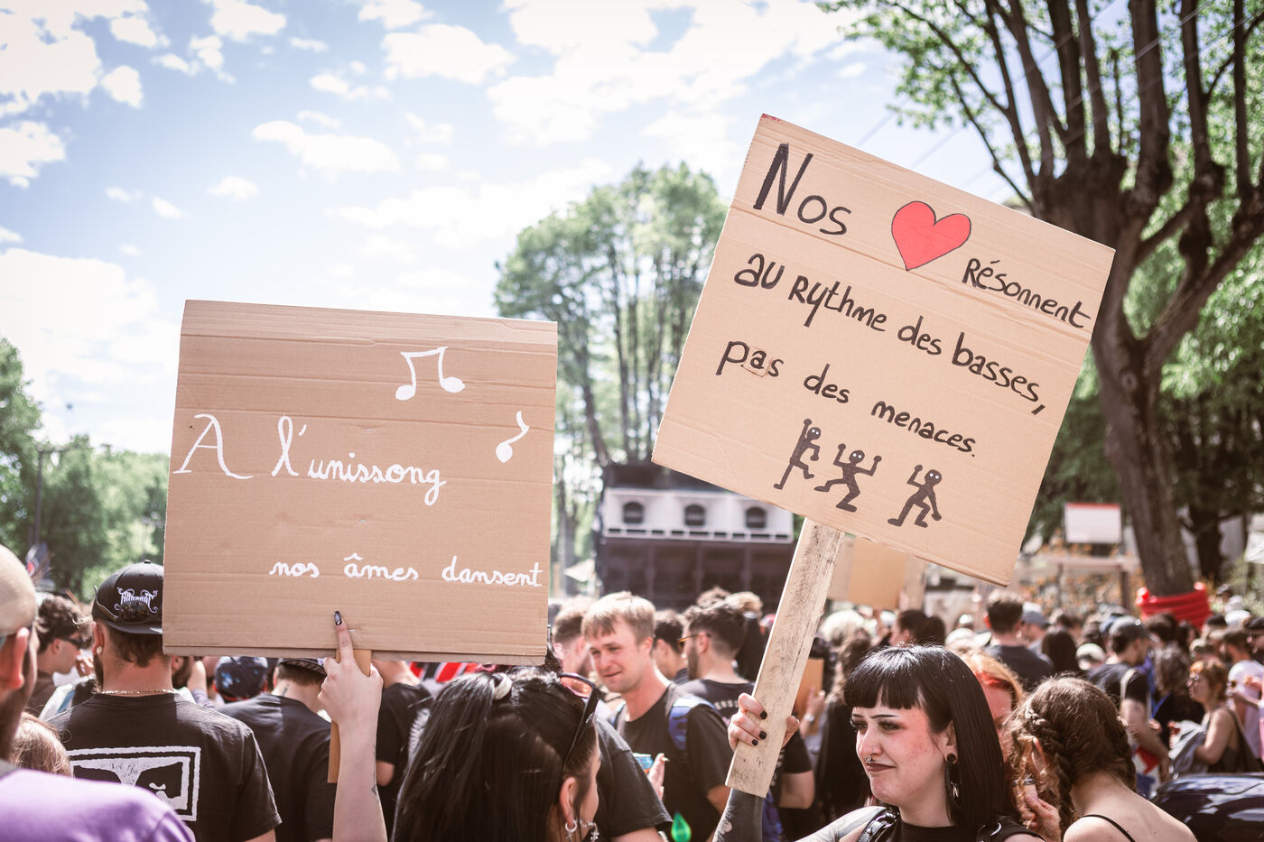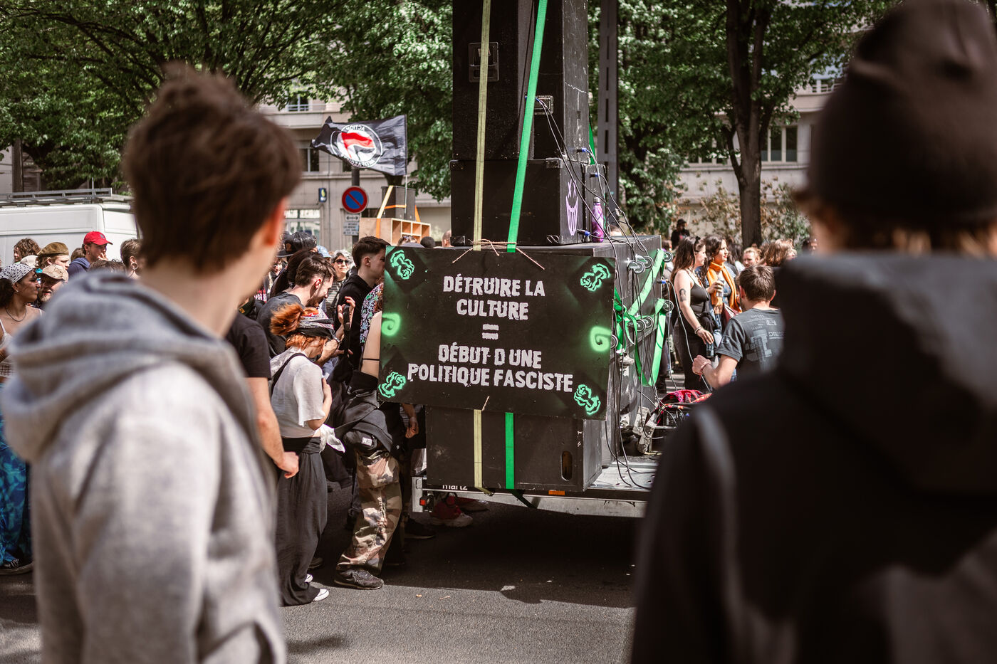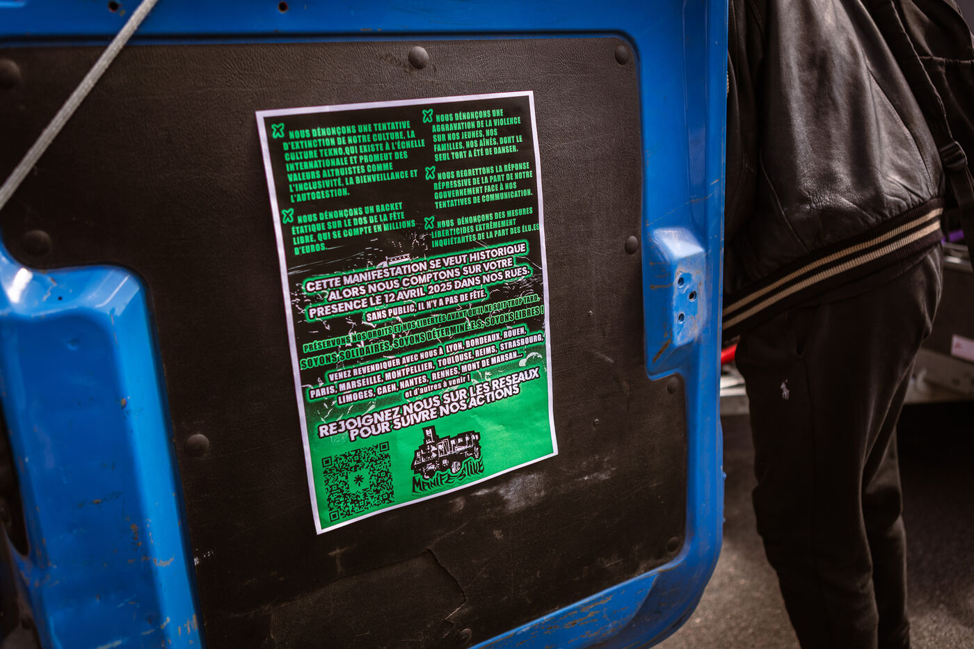 A festive demonstration took place in defense of the free party and against repression in Lyon, France on April 12, 2025.
