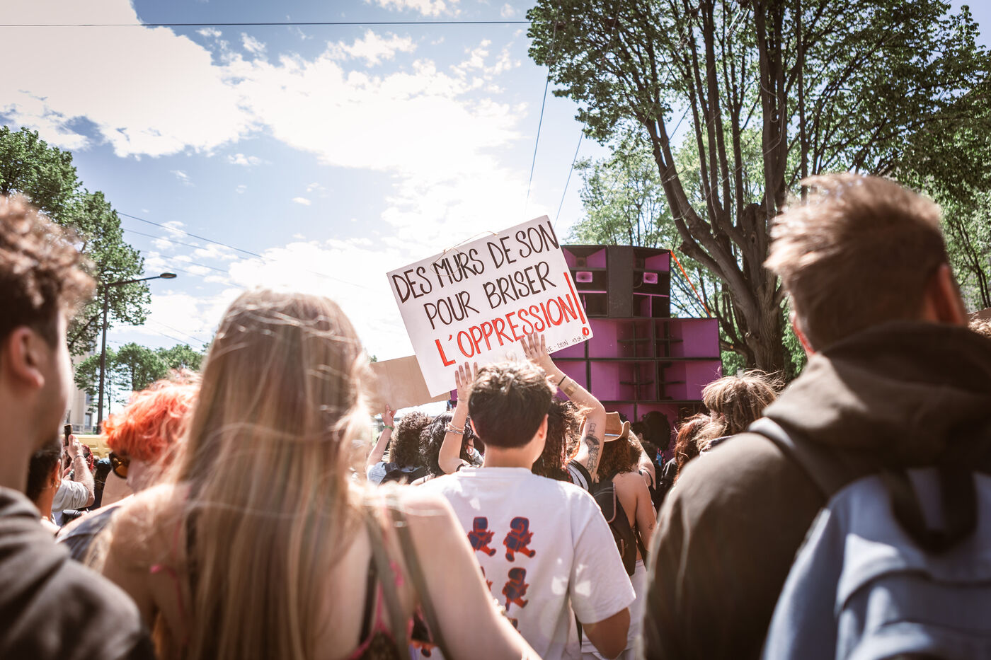 Une manifestation festive a eu lieu en défense de la fête libre et contre la répression à Lyon en France le 12 avril 2025.