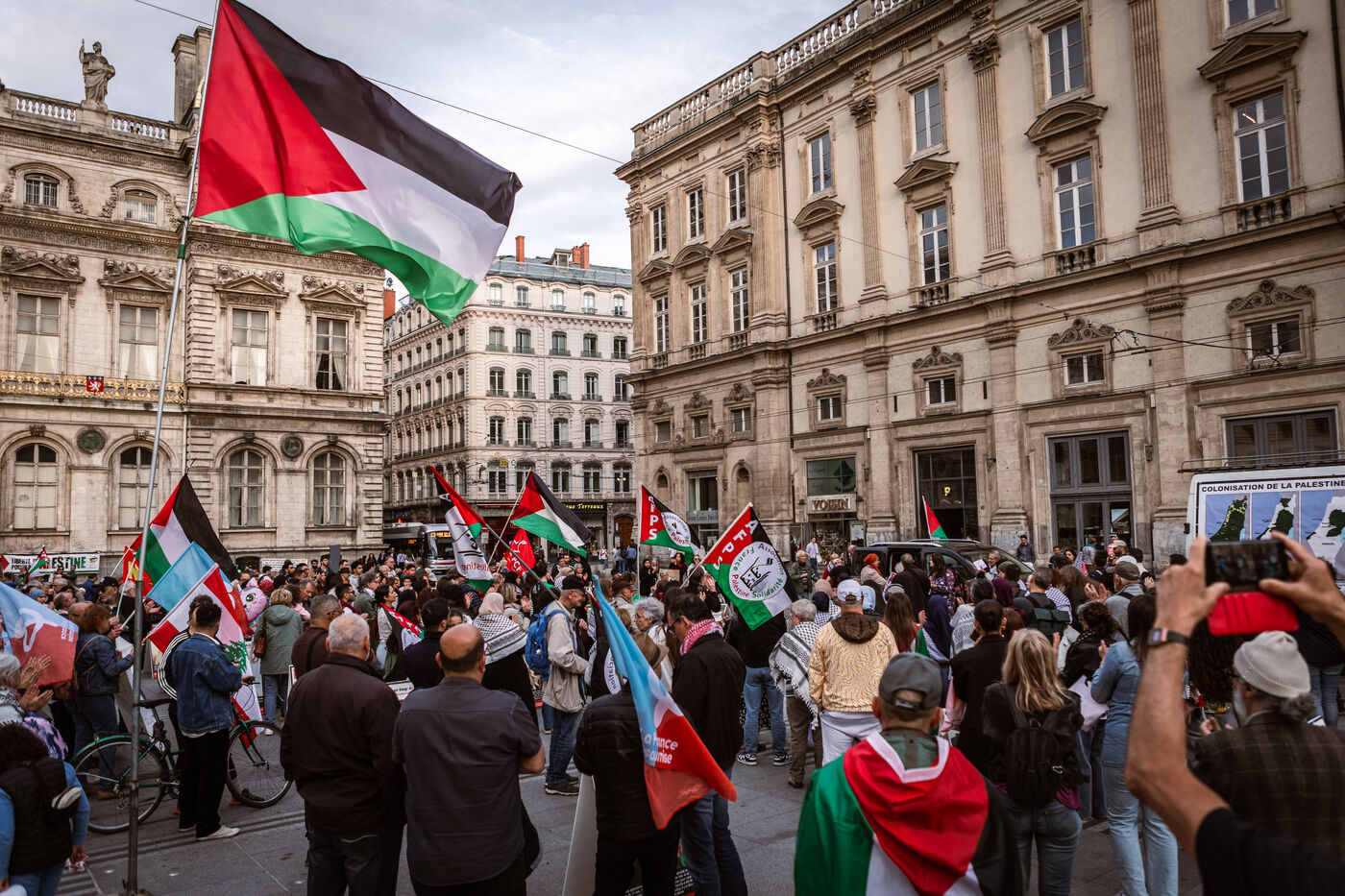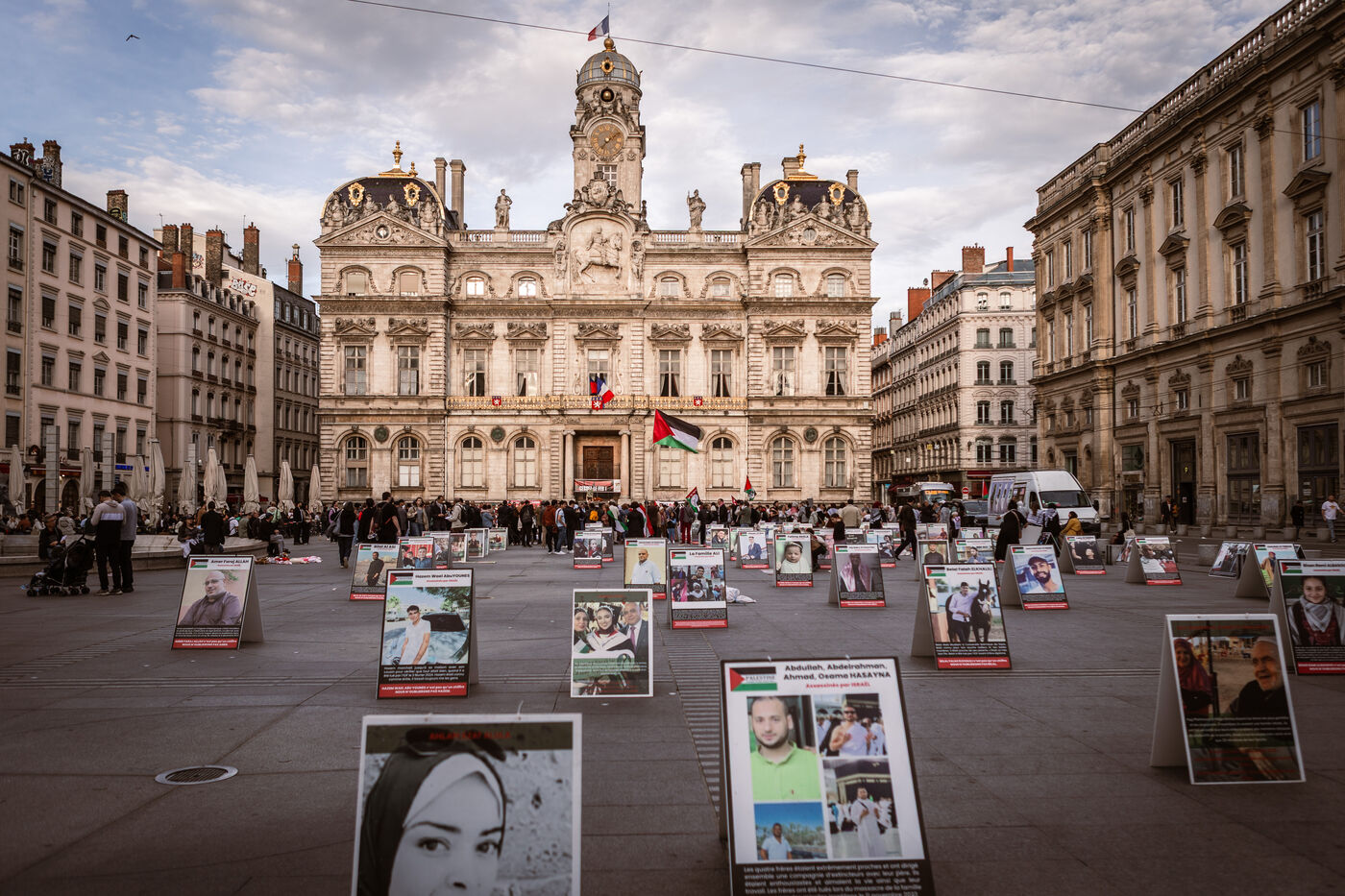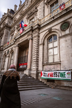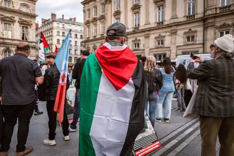 À l'appel du collectif 69 Palestine, de nombreuses personnes se sont rassemblées pour assister à un die-in en hommage aux palestiniens et palestiennes tué·e·s par l'état génocidaire Israël et en soutien au peuple palestinien à Lyon en France le 12 avril 2025.