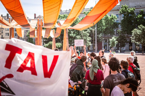 Le départ du convoi des Déraillantes contre la nouvelle ligne ferroviaire Lyon-Turin a eu lieu sur la Place Bellecour à Lyon en Fance le 24 mai 2025. Ce convoi de 9 jours à vélo est à l'initiative des Soulèvements de la Terre pour dire Stop au projet Lyon-Turin qui implique des bouleversements irréversibles des cycles hydrogéologiques.