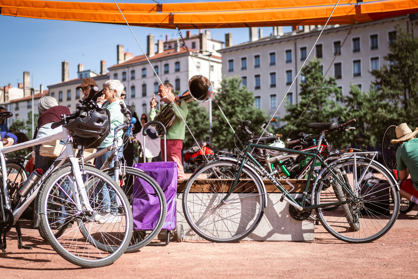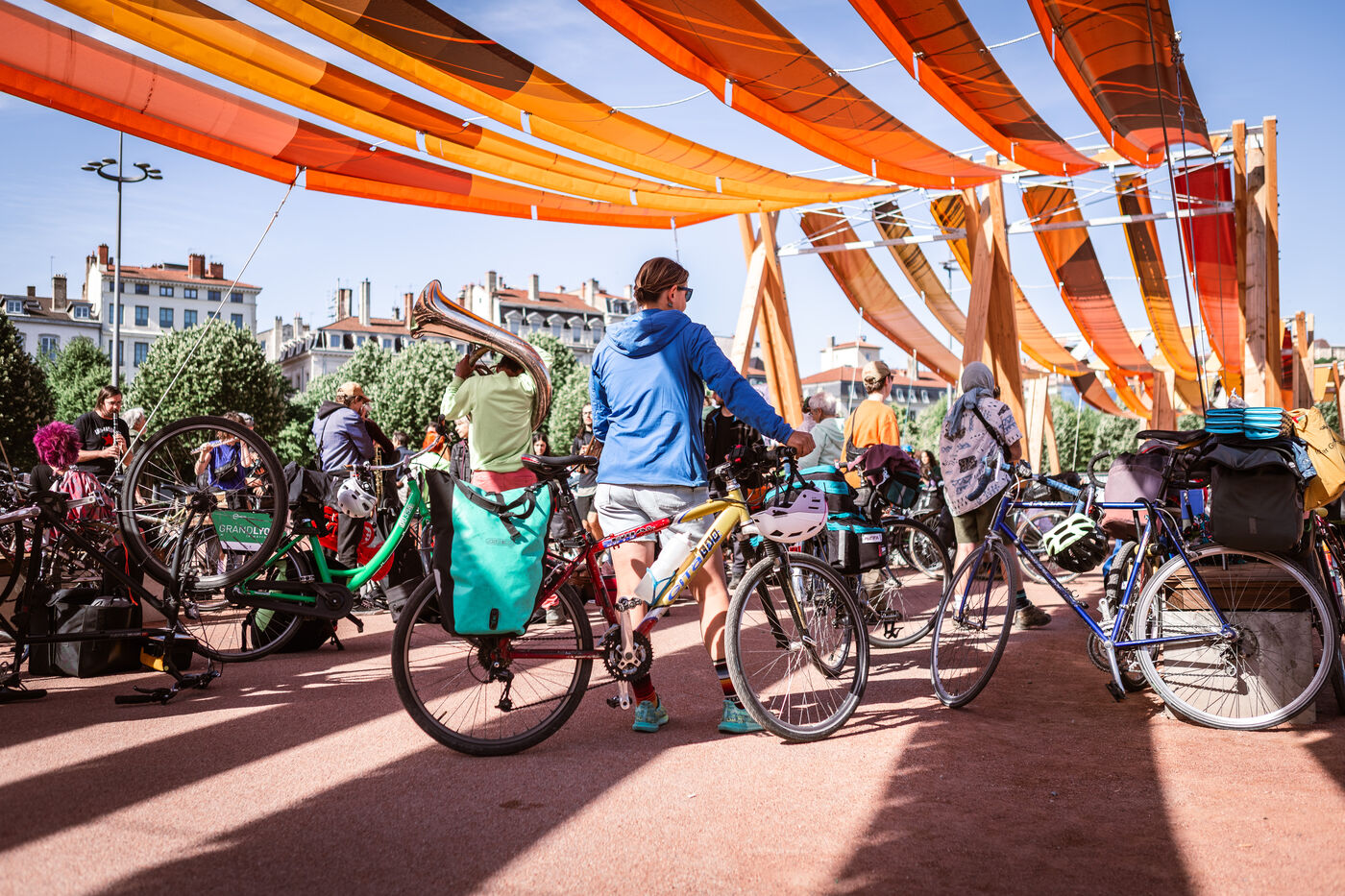 The departure of the Déraillantes convoy against the new Lyon-Turin railway line took place on the Place Bellecour in Lyon en Fance on May 24, 2025. This 9-day bicycle convoy is the initiative of the Earth Upheavals to say Stop to the Lyon-Turin project that involves irreversible changes in hydrogeological cycles.