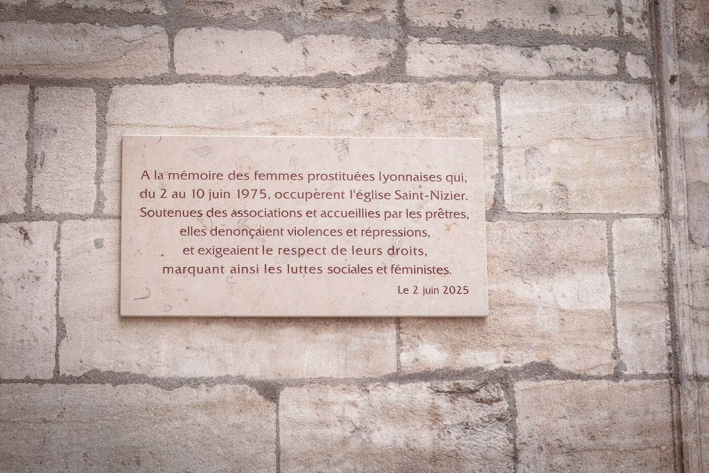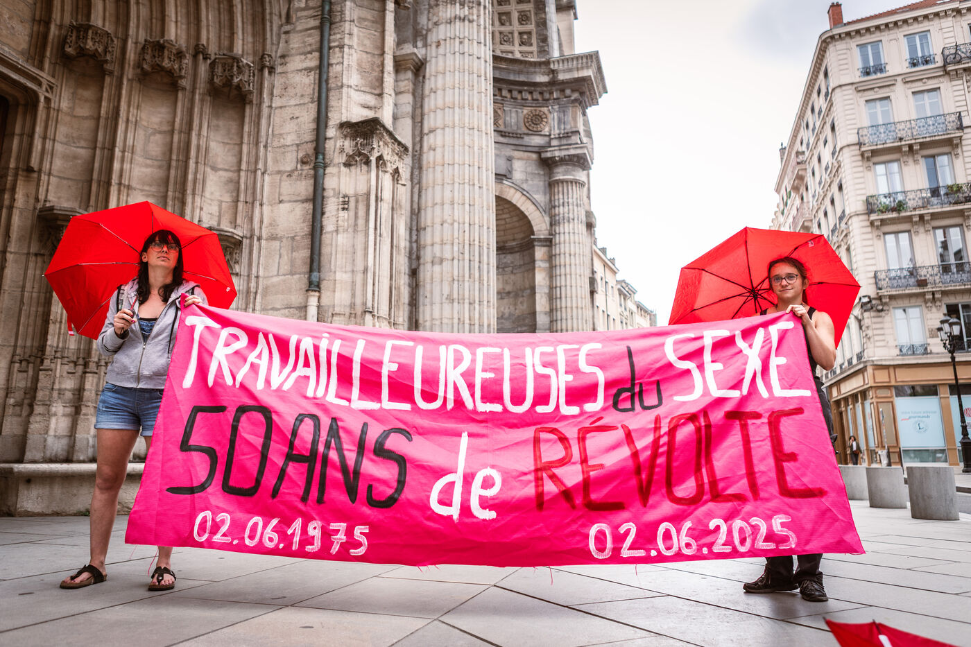 Un rassemblement a eu lieu à Lyon en France le 2 juin 2025 suite au week-end de mobilisation pour la commémoration des 50 ans de l’occupation de l’Église St Nizier par des prostituées le 2 juin 1975, contre les violences et pour le respect de leurs droits. Des collectifs de travailleur·euse·s du sexe étaient présents, ainsi que des manifestantes en parcours de sortie de prostitution et menacées d’OQTF (obligation de quitter le territoire français).