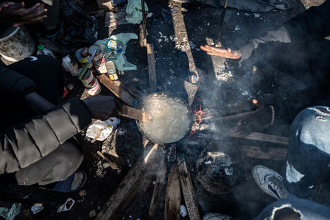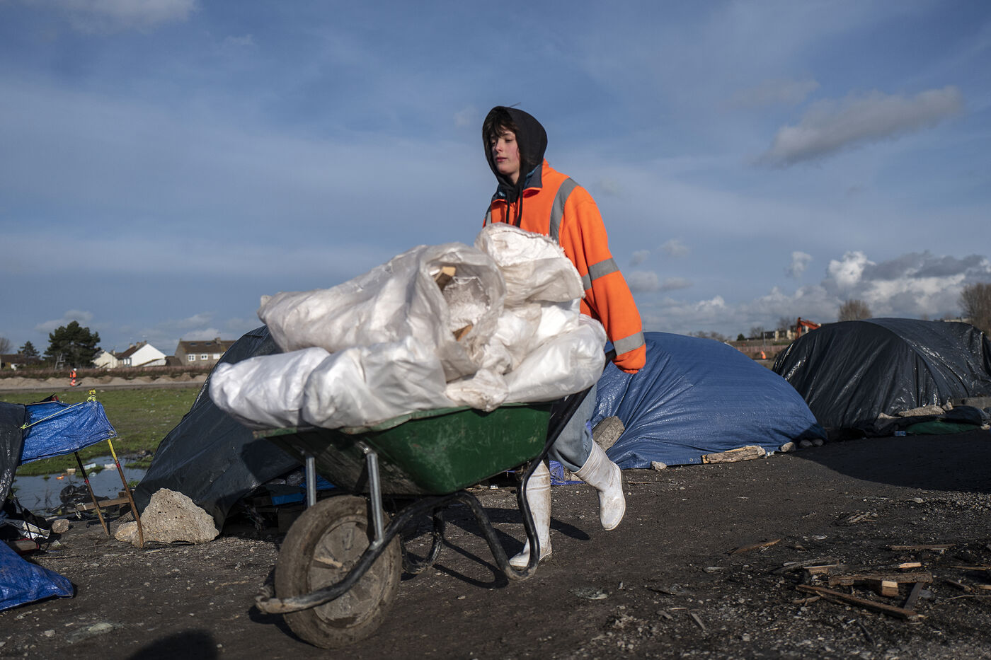 Tous les jours, les membres du projet Woodyard arpentent les ponts et autres terrains vagues de Calais. Aux pieds des camps de fortune, ils déposent des sacs remplis de bûchettes. Grâce à eux, les personnes exilées se réchauffent, cuisinent et tuent le temps autour des flammes. Souvent sans argent pour payer la traversée de la Manche en bateau, les candidats à la traversée survivent pendant des mois dans la boue. Avec, pour seul salut, un faisceau d?associations qui se démènent pour leur survie.