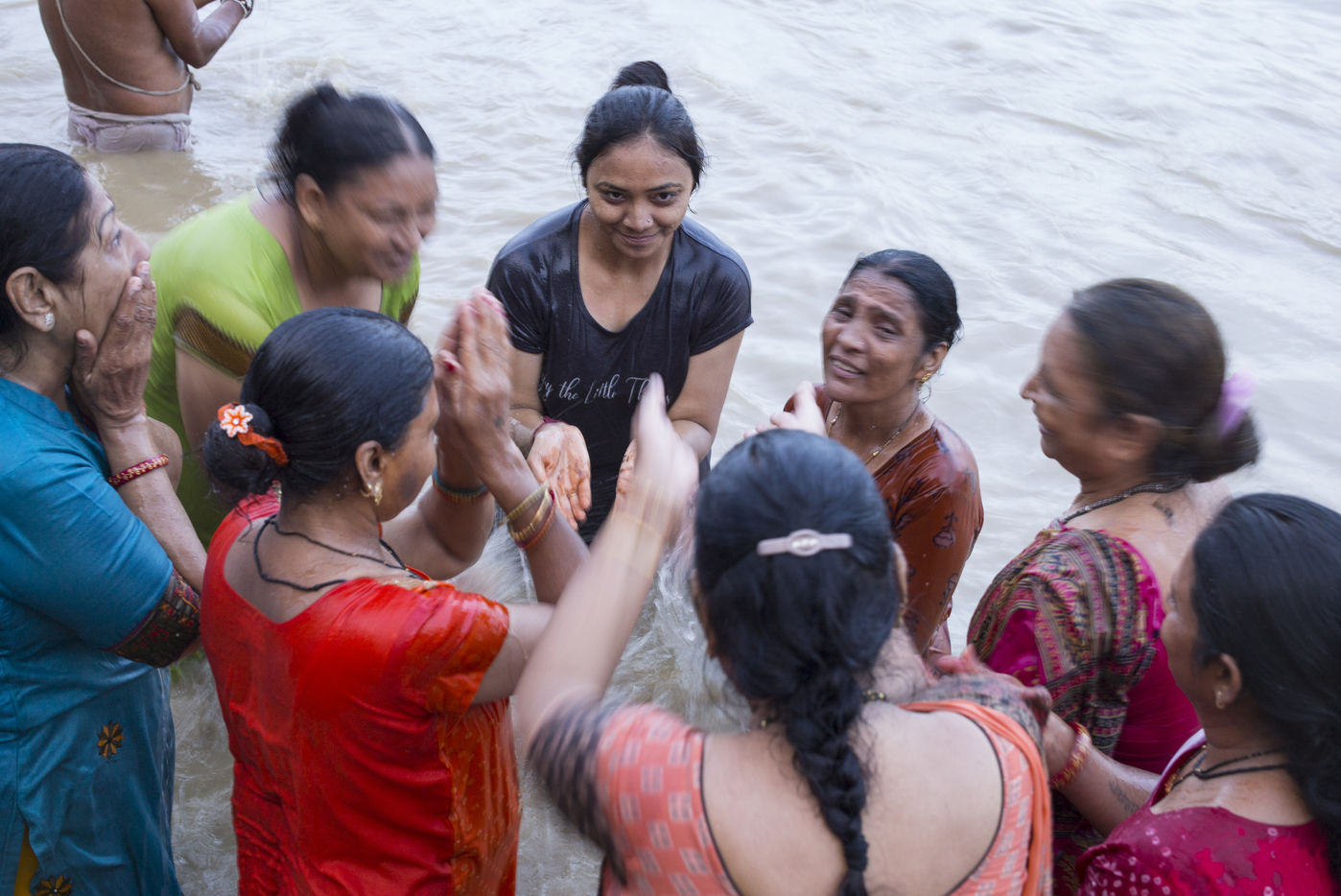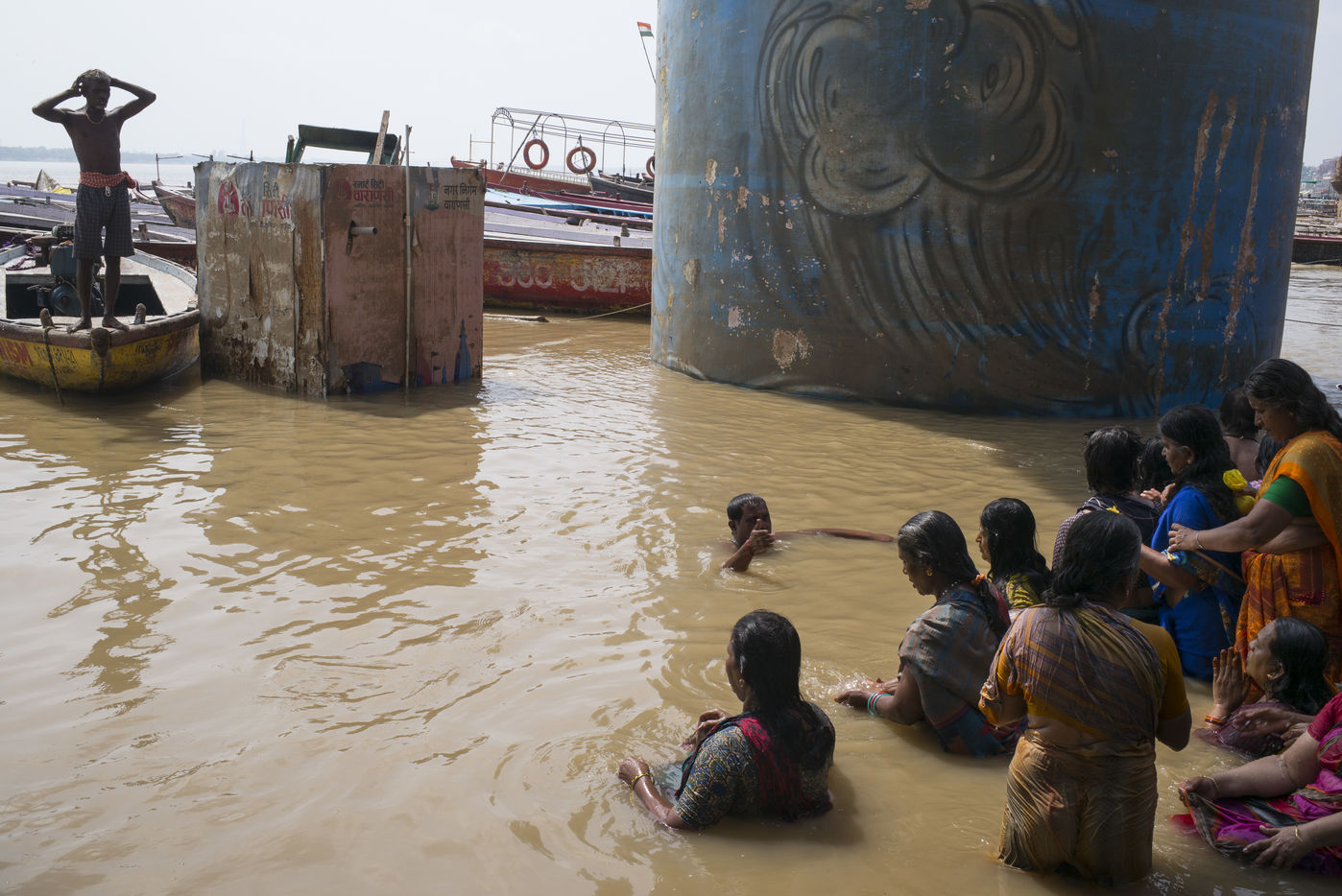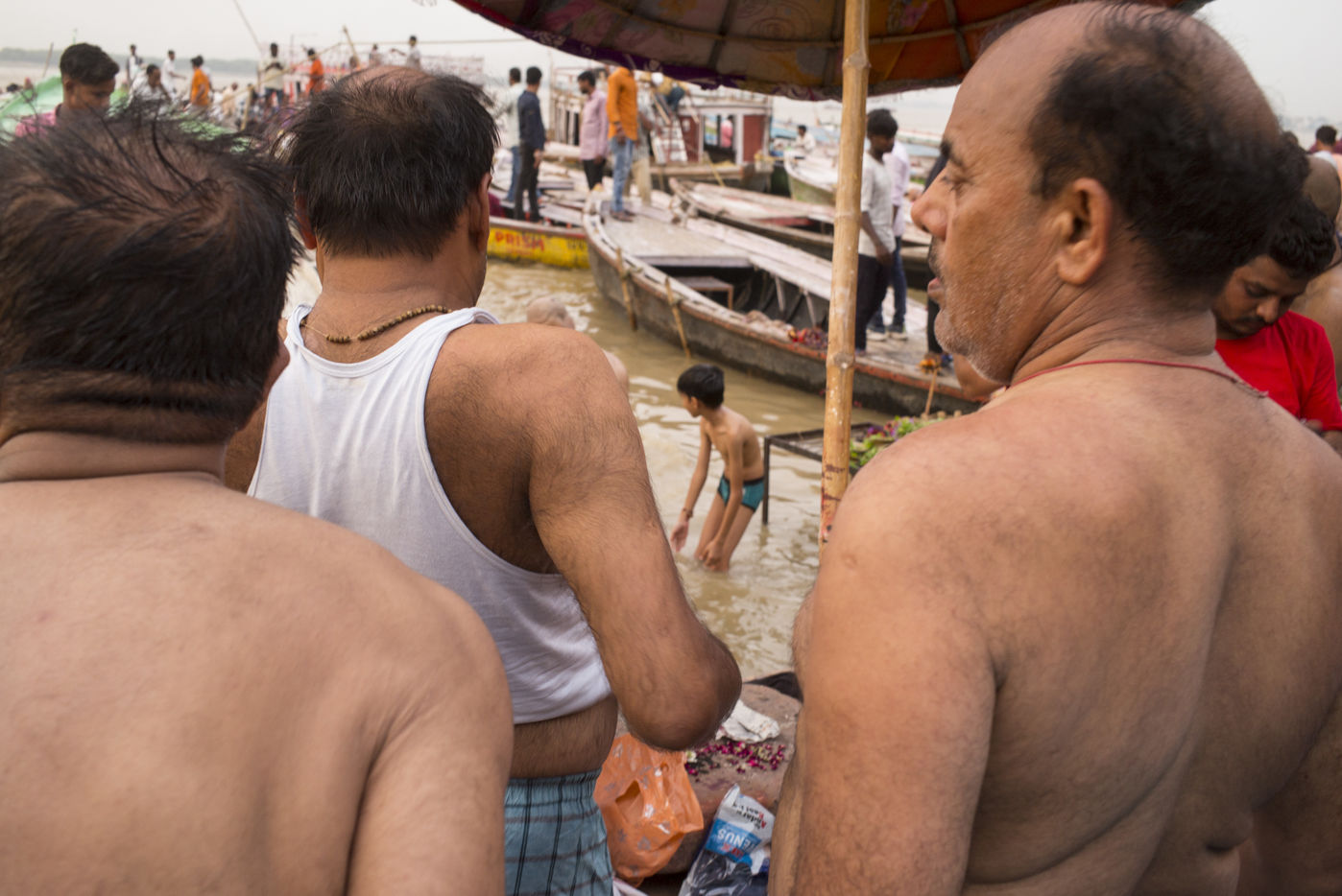 Located on the left bank of the Ganges, Varanasi is the holiest city in Hinduism and Jainism. It hosts the largest number of pilgrims in India. At the end of the monsoon season, the ghats are reduced to a bare minimum as the waters of the Ganges rise