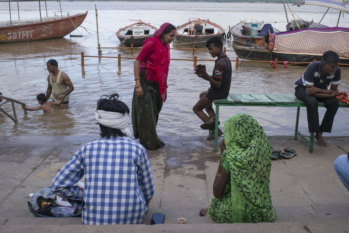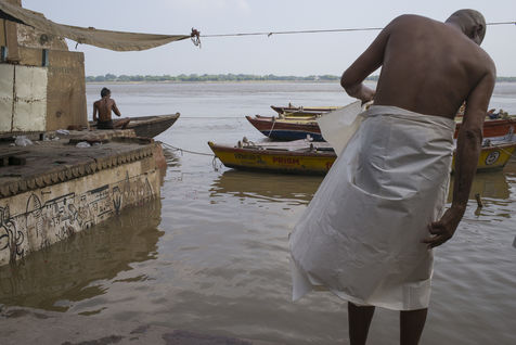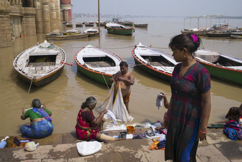 Située sur la rive gauche du Gange, Varanasi est la ville la plus sacrée de l'hindouisme et du jaïnisme. Elle accueille le plus de pèlerins en Inde. A la fin de la mousson les ghâts sont réduits au strict minimum avec la montée des eaux du Ganges.