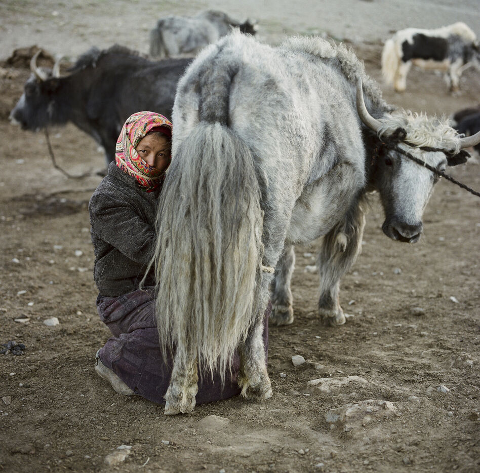 From May to September, 8 families from the village of Karakul go up to the jailoo of Jalang, situated at 4,094 m, with 60 to 70 yaks and 300 to 400 sheep. The jailoo consists of sun-dried brick houses, traditional yurts and tents. Milking of the yaks takes place twice a day in the morning and evening.