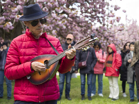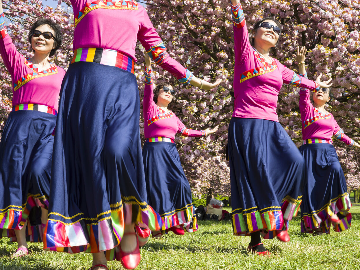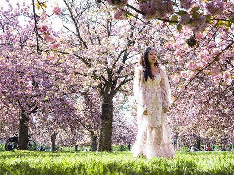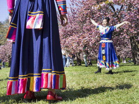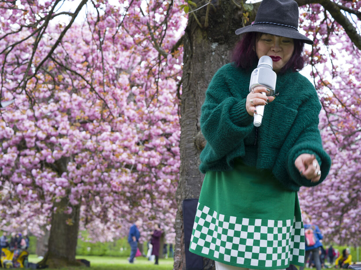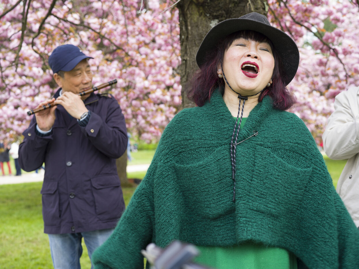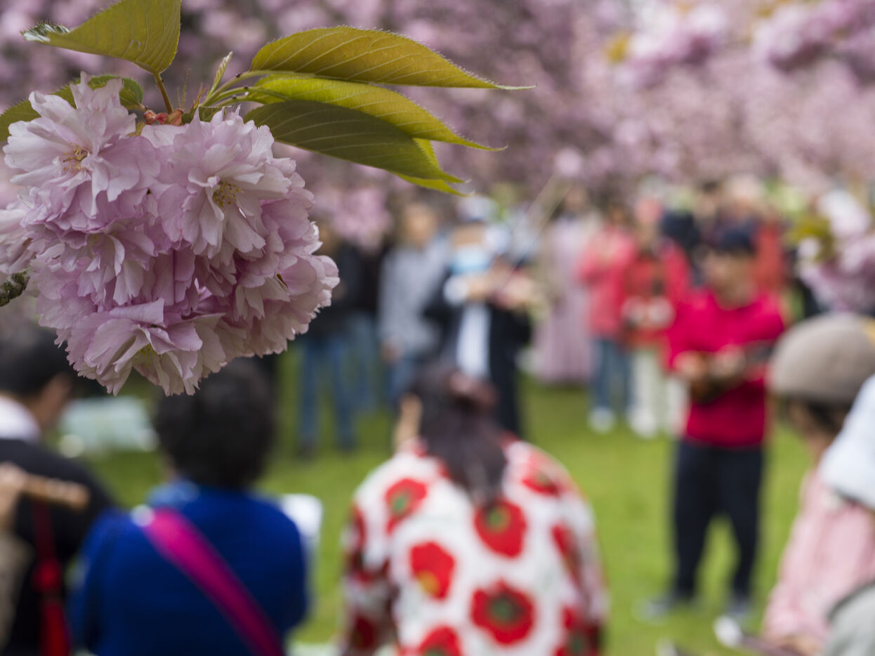 On célèbre Hanami, la fameuse fête des cerisiers en fleurs du printemps, au Parc de Sceaux.