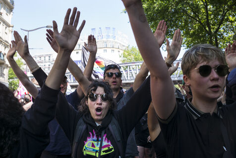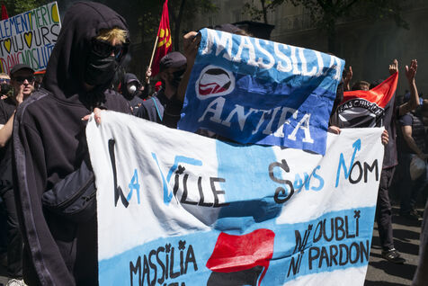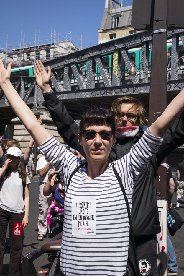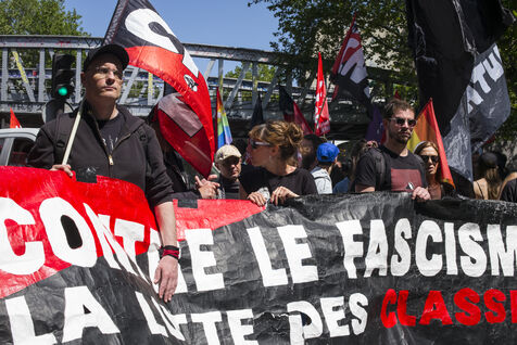 Anti-fascist demonstration in Barbes Rochechouart to mark the tenth anniversary of the murder of 18-year-old anti-fascist activist Clement Méric by skinheads.