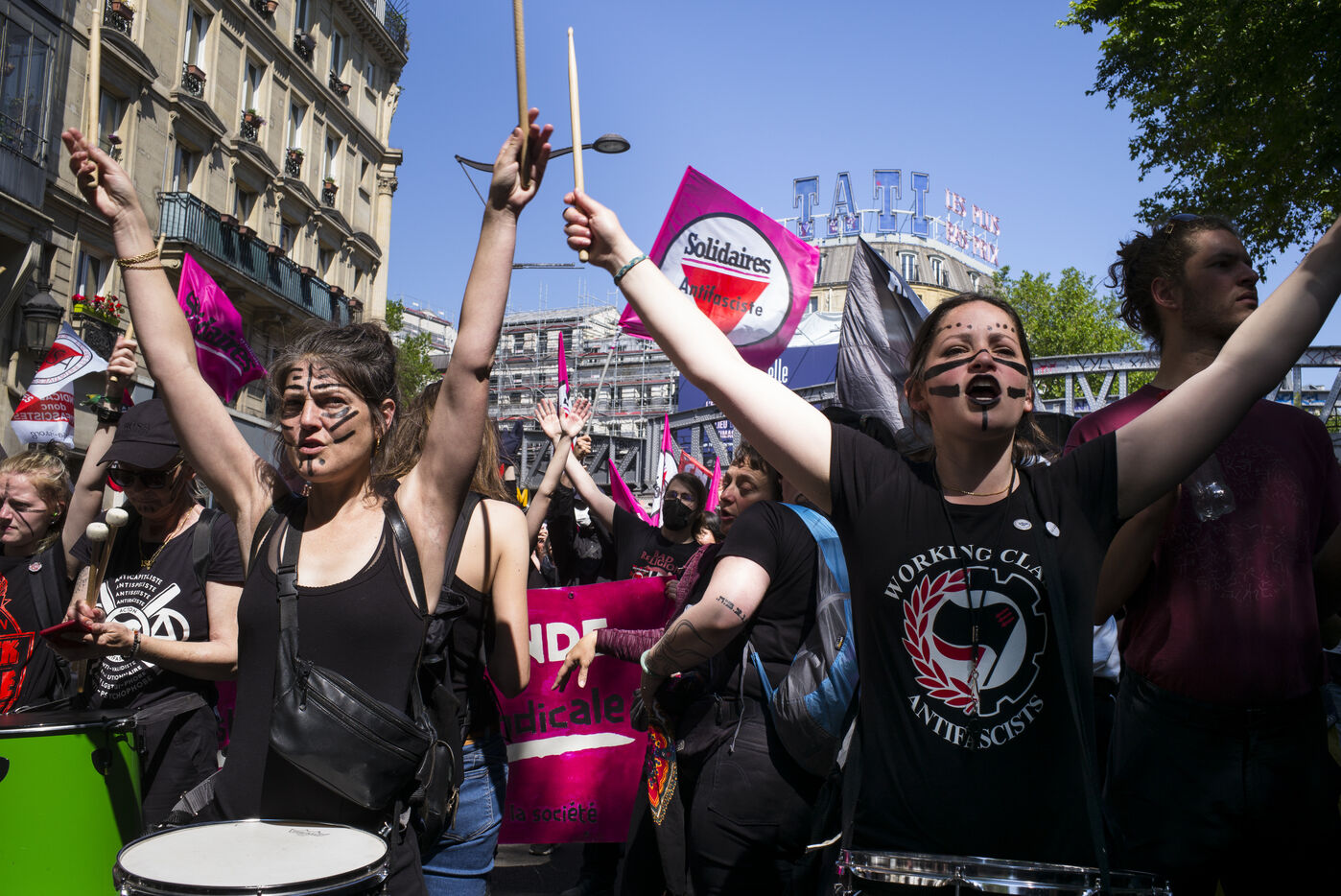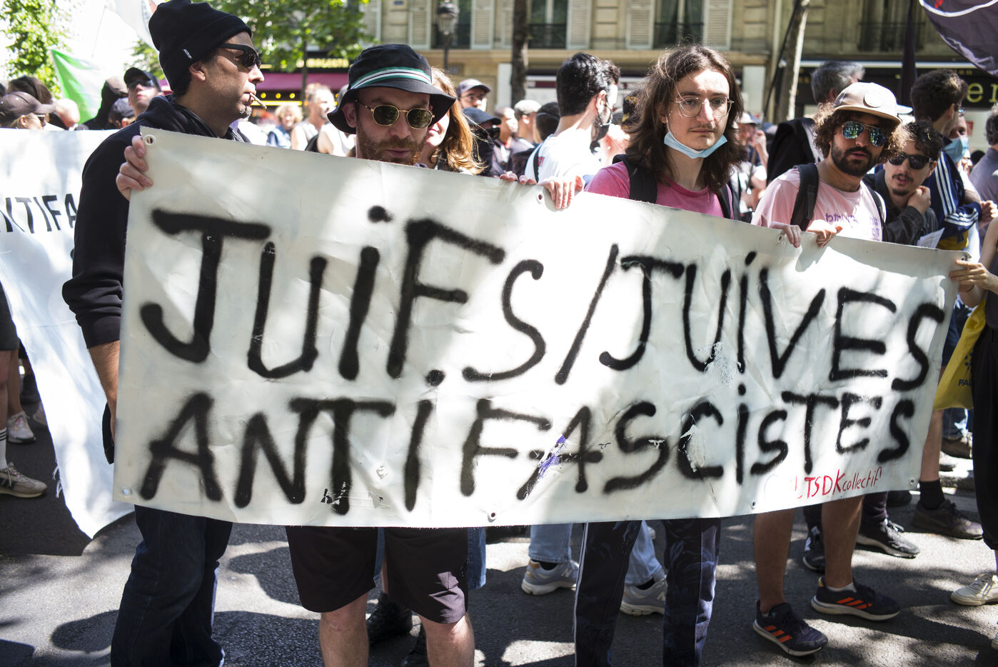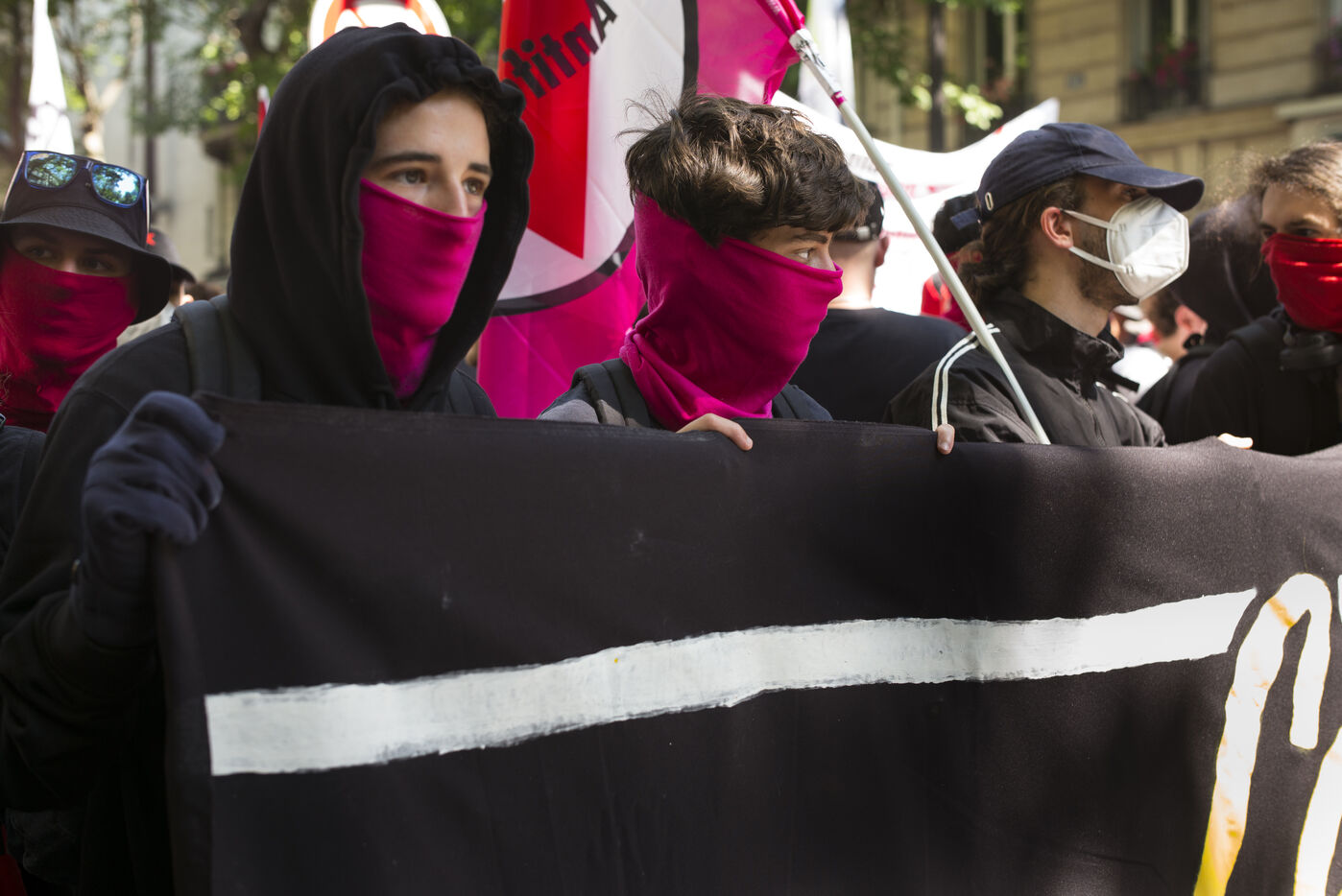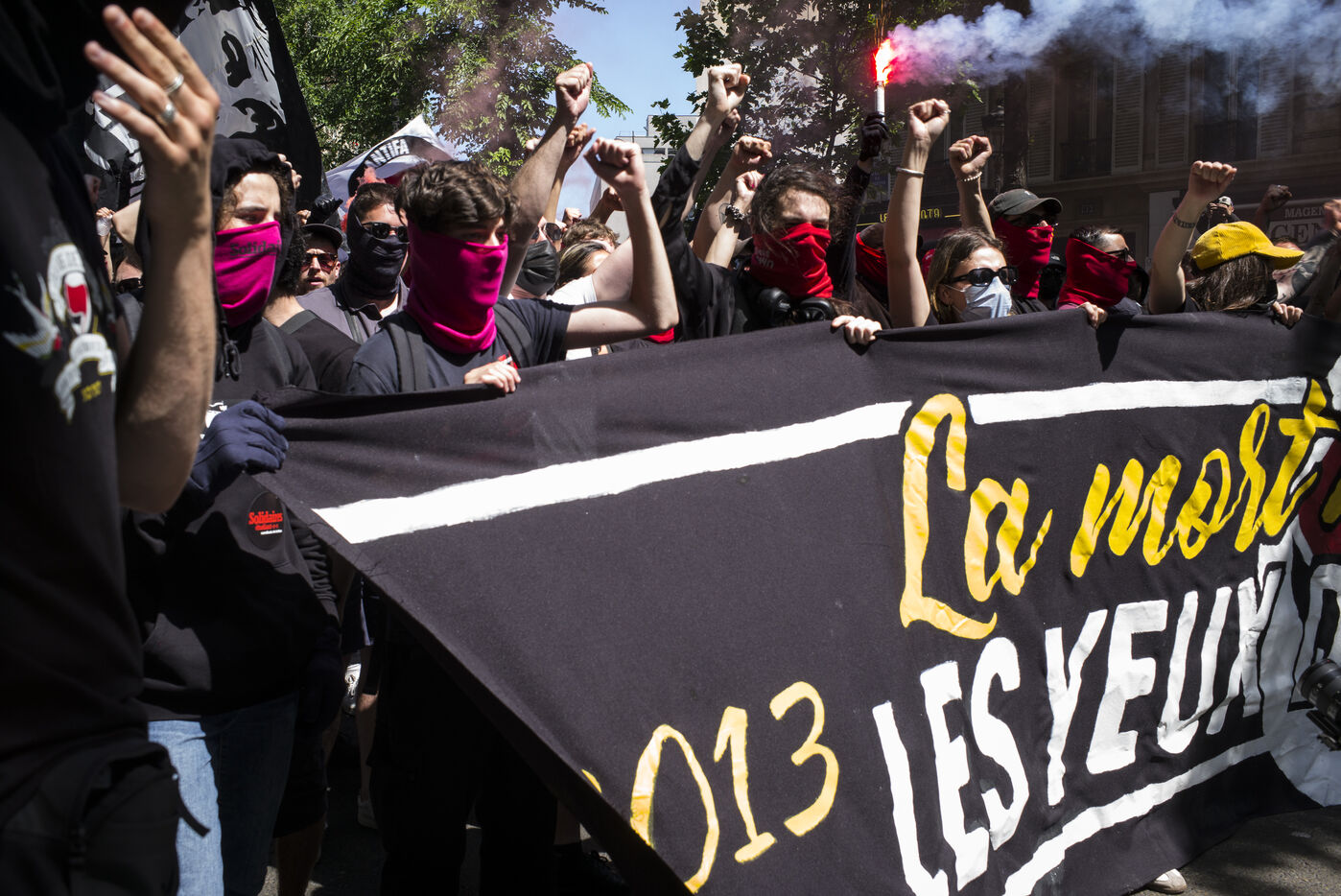 Manifestation à Barbes Rochechouart antifasciste pour le dixième anniversaire du meurtre de Clement Méric, militant antifasciste de 18 ans, par des skinheads