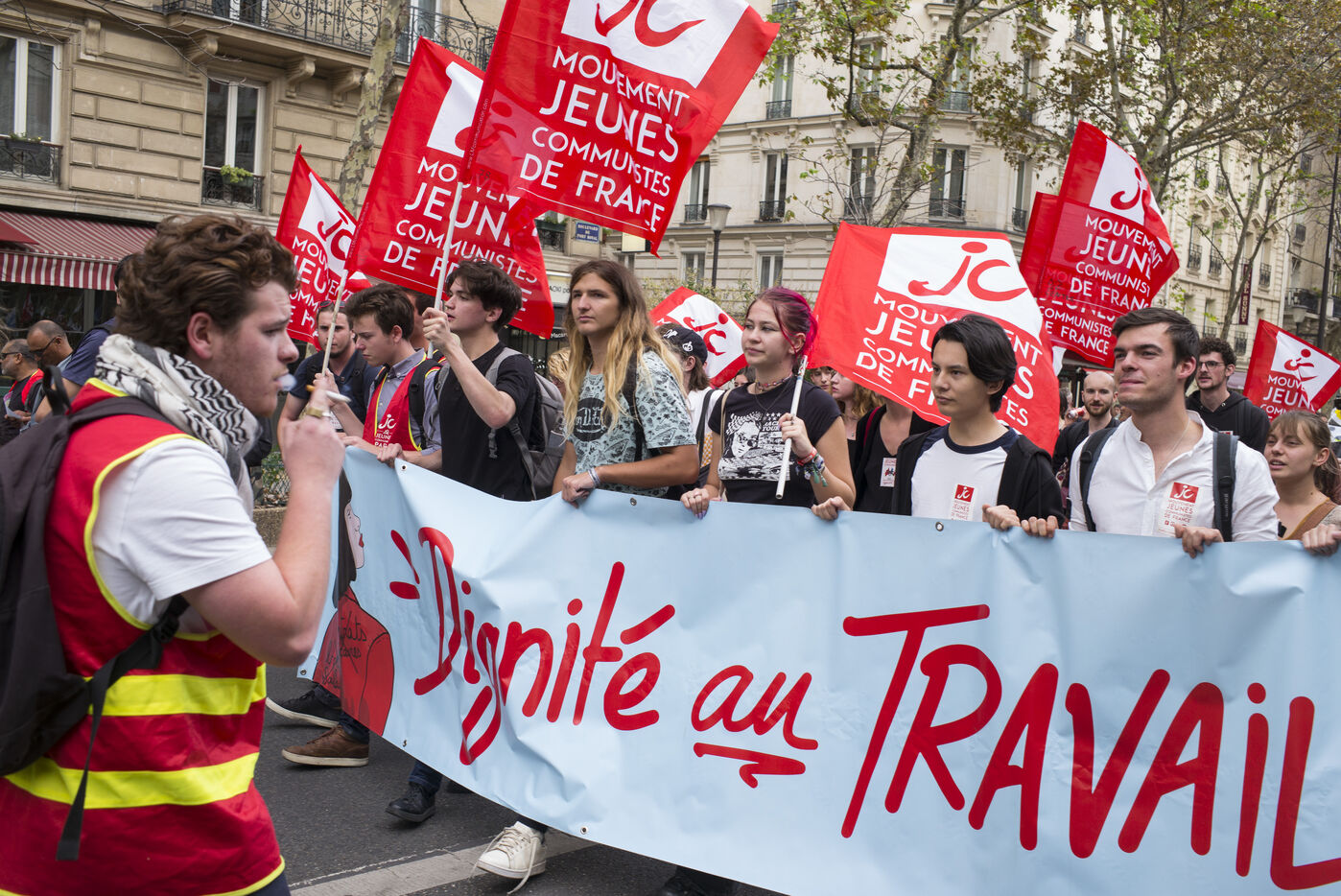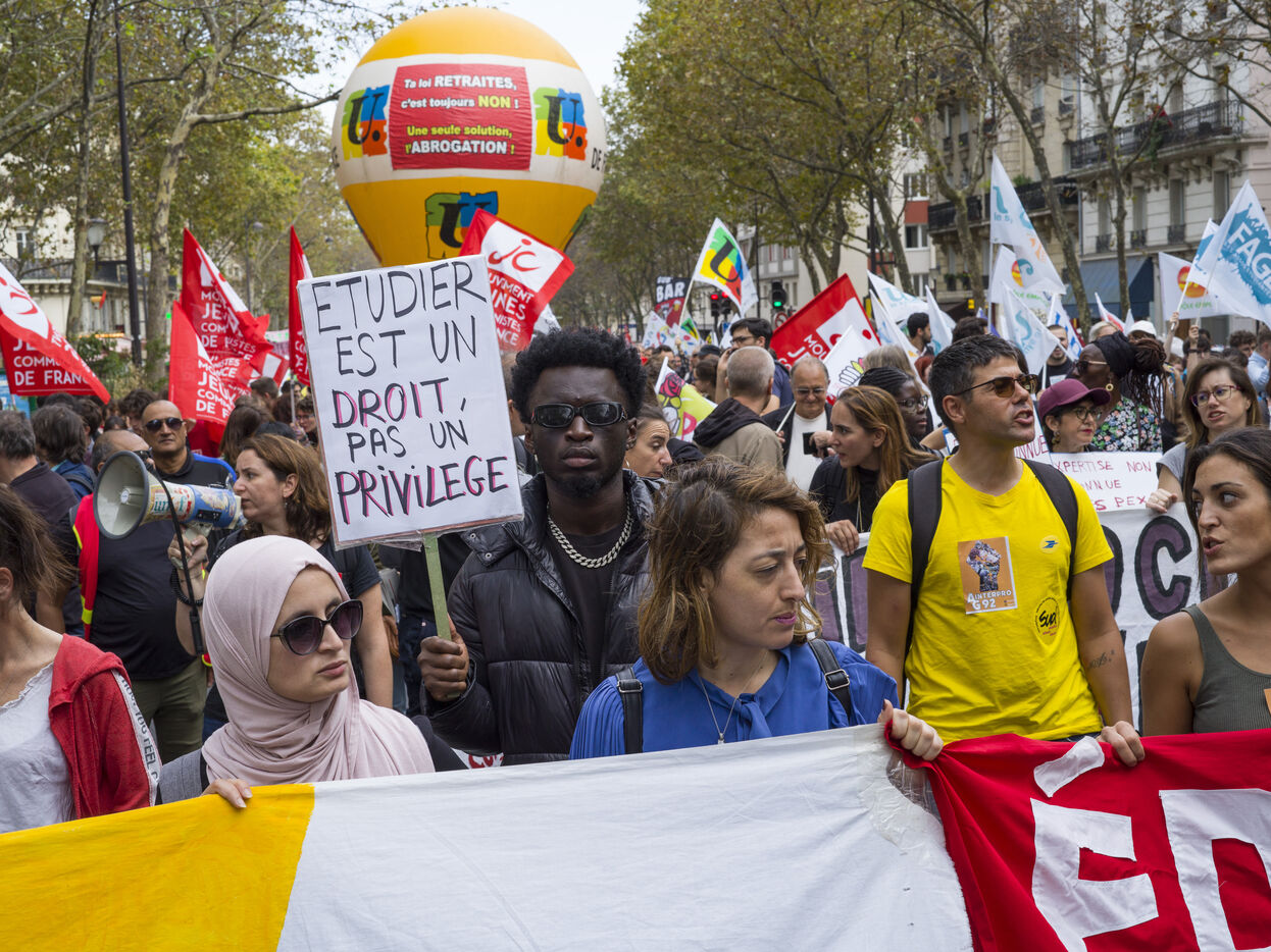 In response to a call from the intersyndical, a march involving various trade unions and youth organisations had as its slogan: the fight against job insecurity, the raising of wages and pensions, and gender equality. The inter-union group marched between Place d'Italie and Les Invalides.
