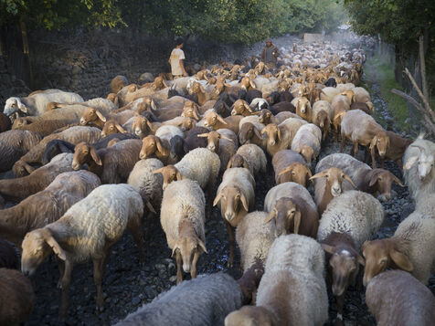 DANS LA VALLÉE DE ZERAVSHAN, LES TROUPEAUX REDESCENDENT DES PATURAGES.