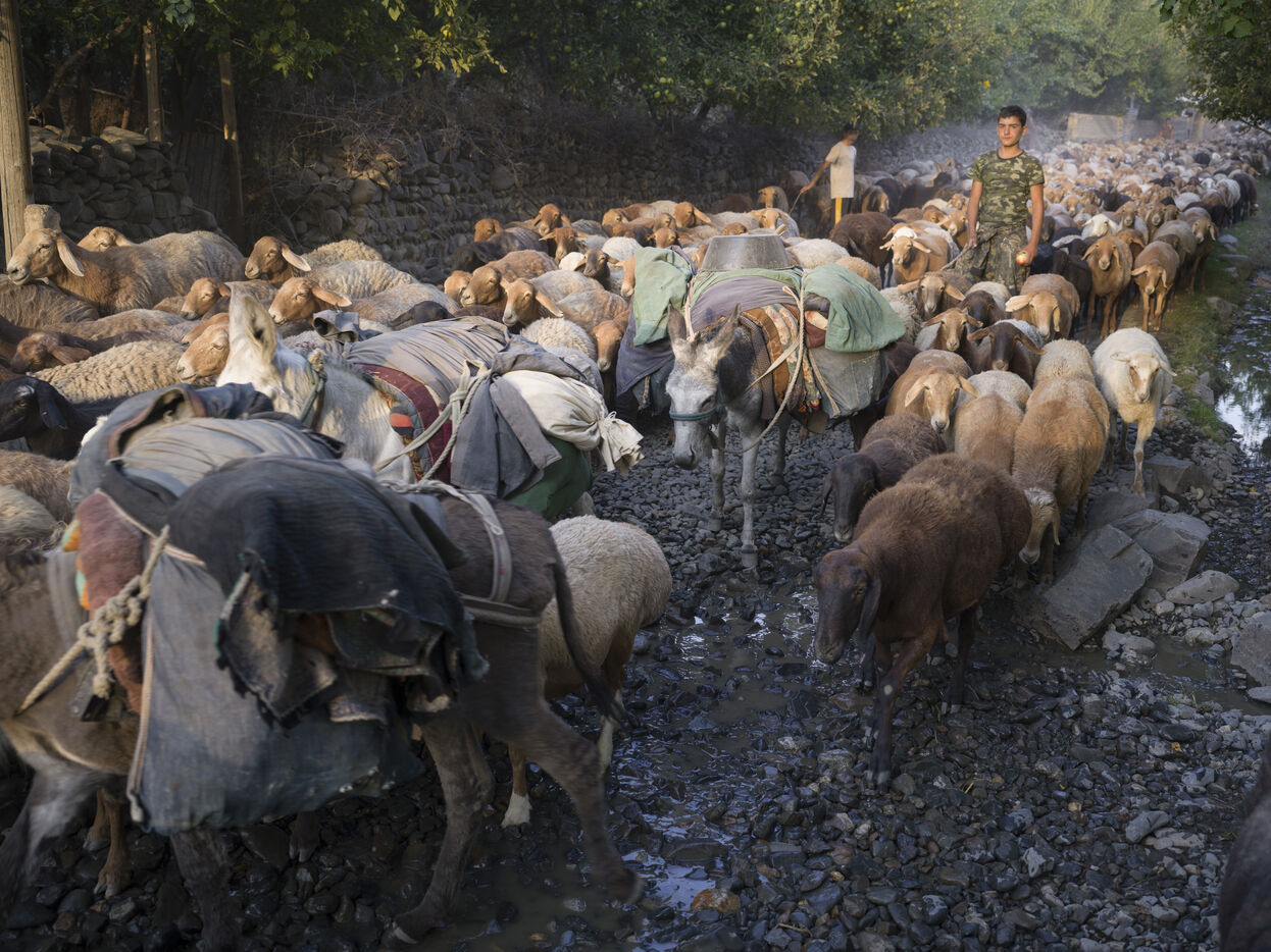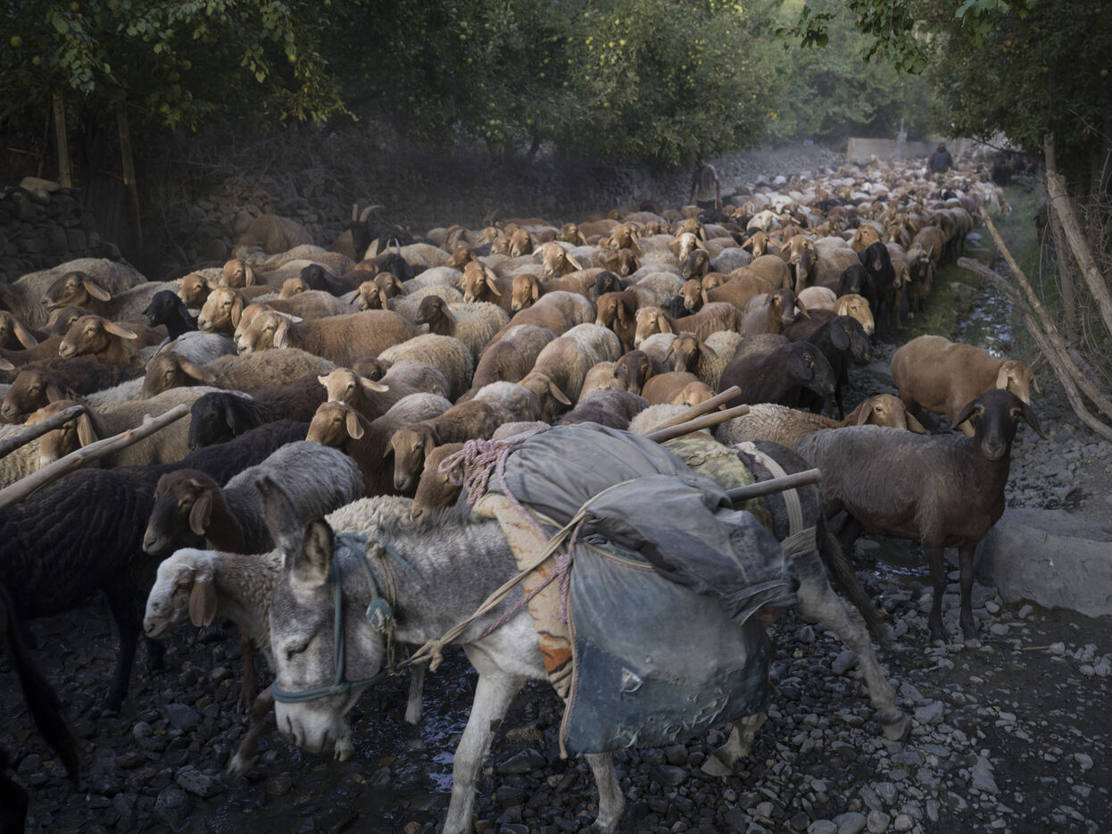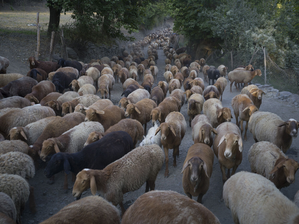 Après plusieurs mois dans les hauts pâturages de la vallée de Zeravshan, les troupeaux de quelques centaines de tête redescendent dans les villages.