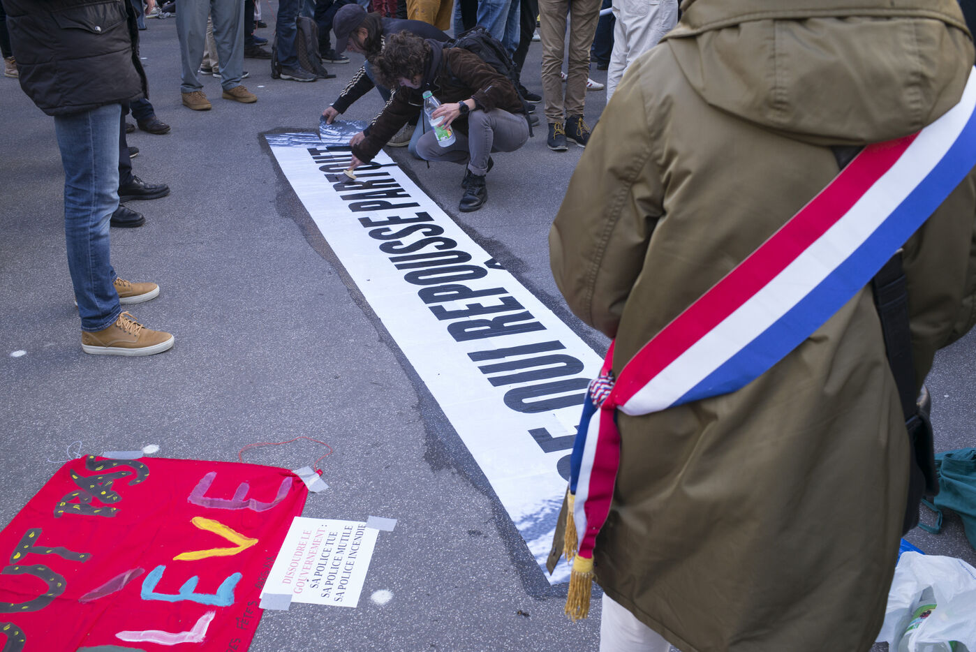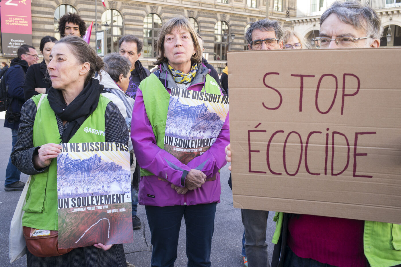 RALLY IN FRONT OF THE CONSEIL D'ETAT AGAINST THE DISSOLUTION OF SOULEVEMENTS DE LA TERRE.