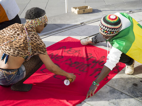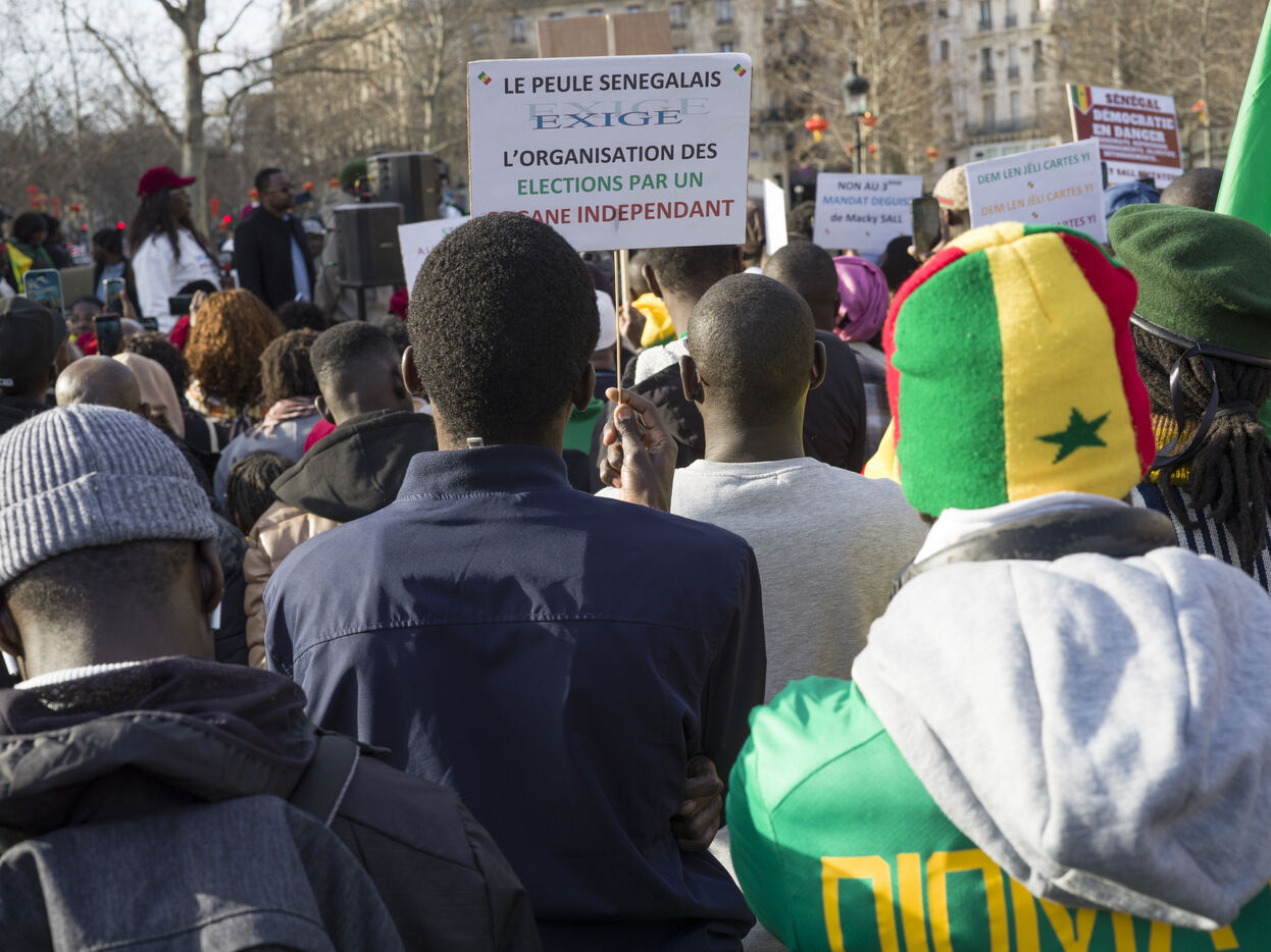 Environ deux cents manifestants, majoritairement membre dispora sénégalaise, manifestent place de la République à Paris contre le président Macky Sall après l'annonce du report de l'élection présidentielle.