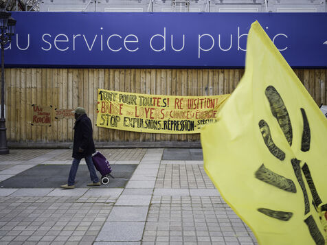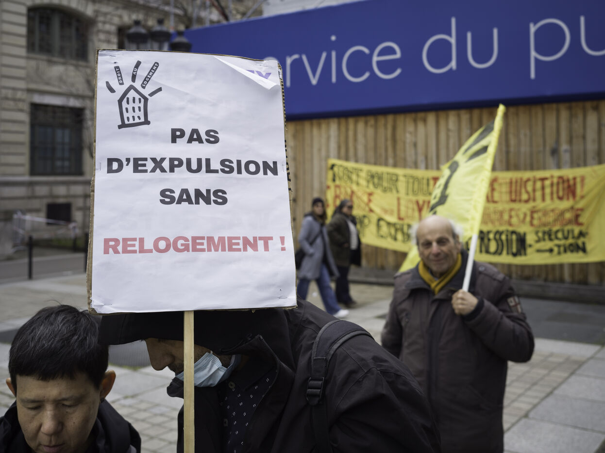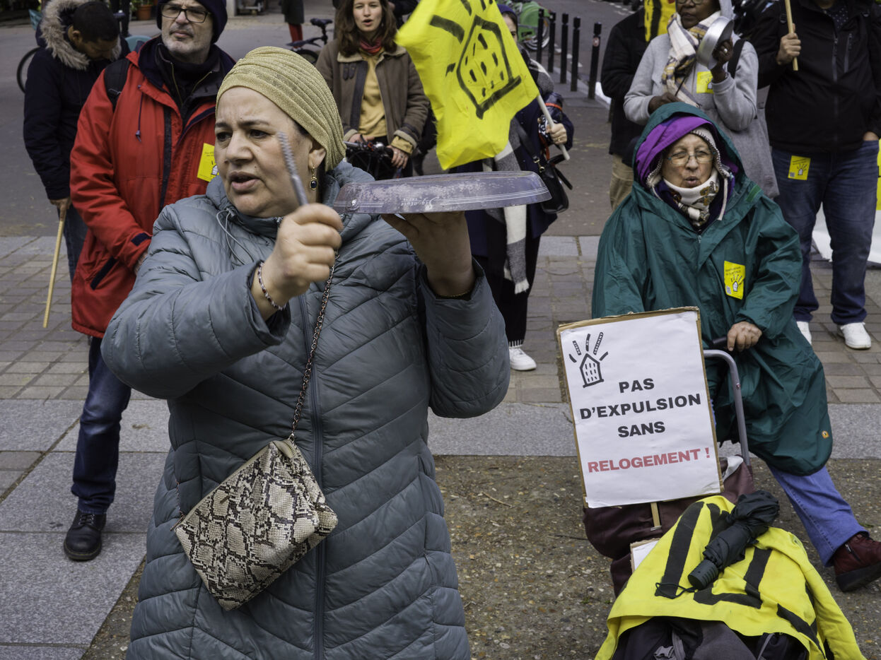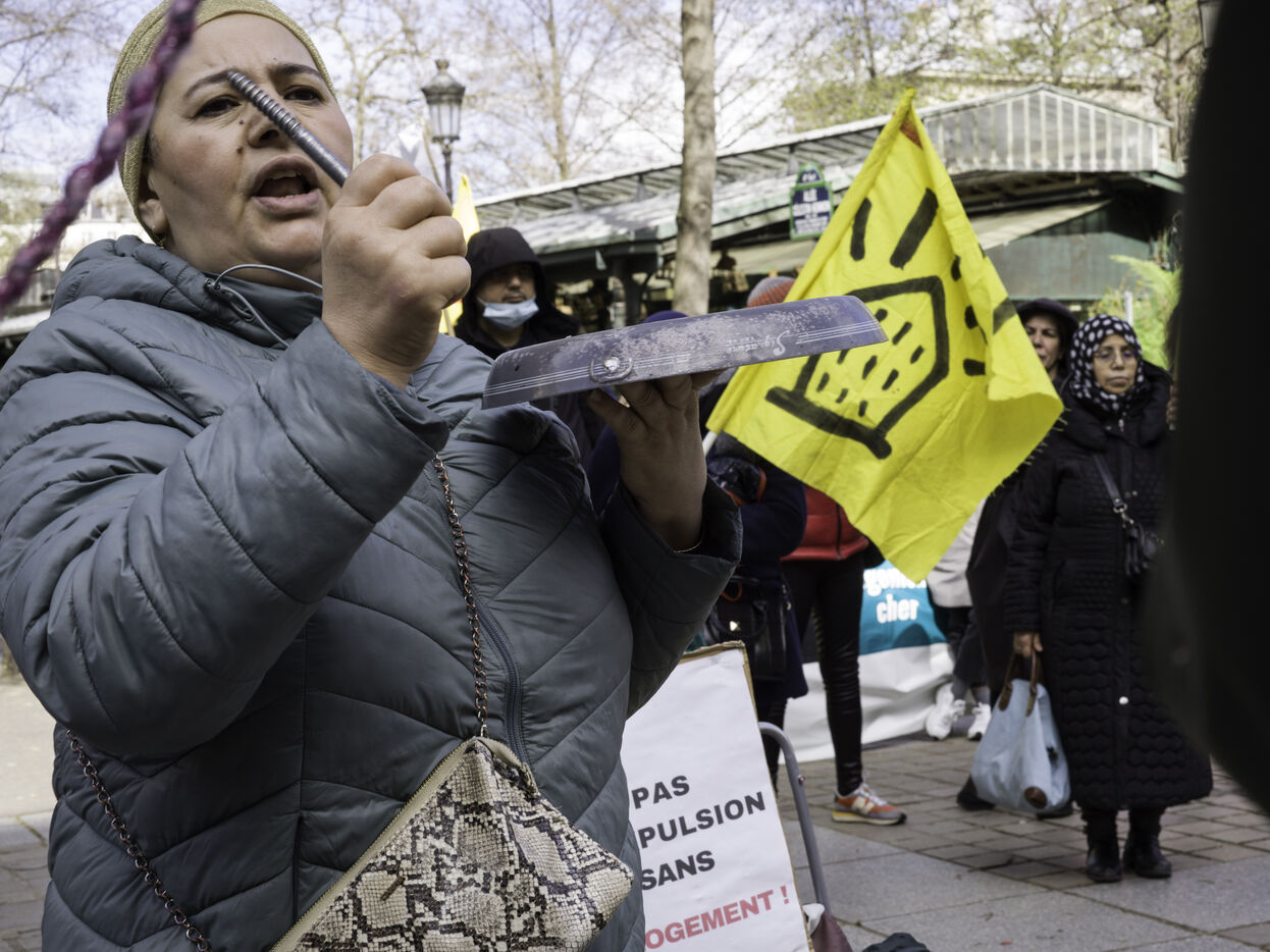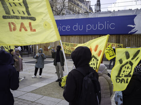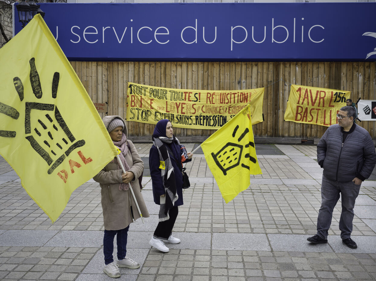The Droit au logement(DAL) association is demonstrating in front of the Paris police headquarters to protest against evictions linked to the end of the winter strike.