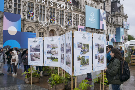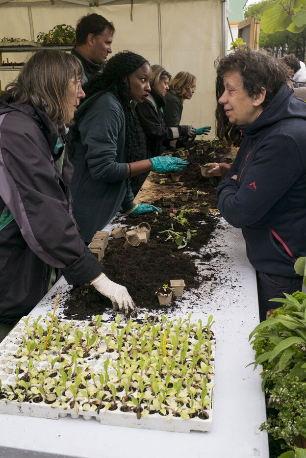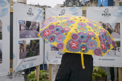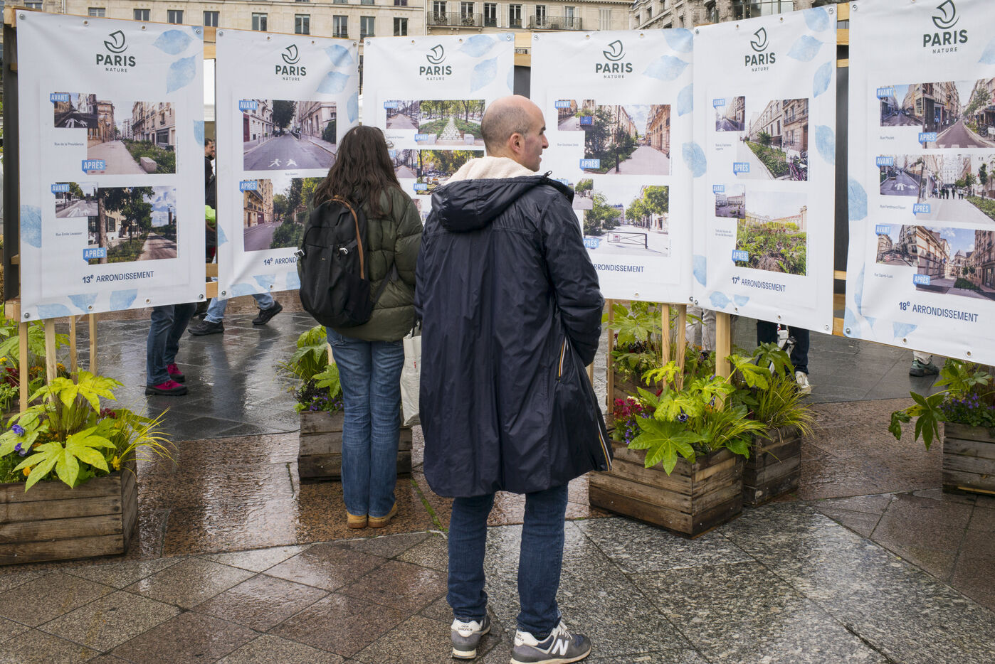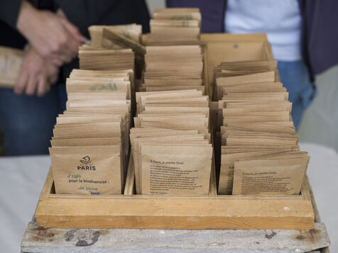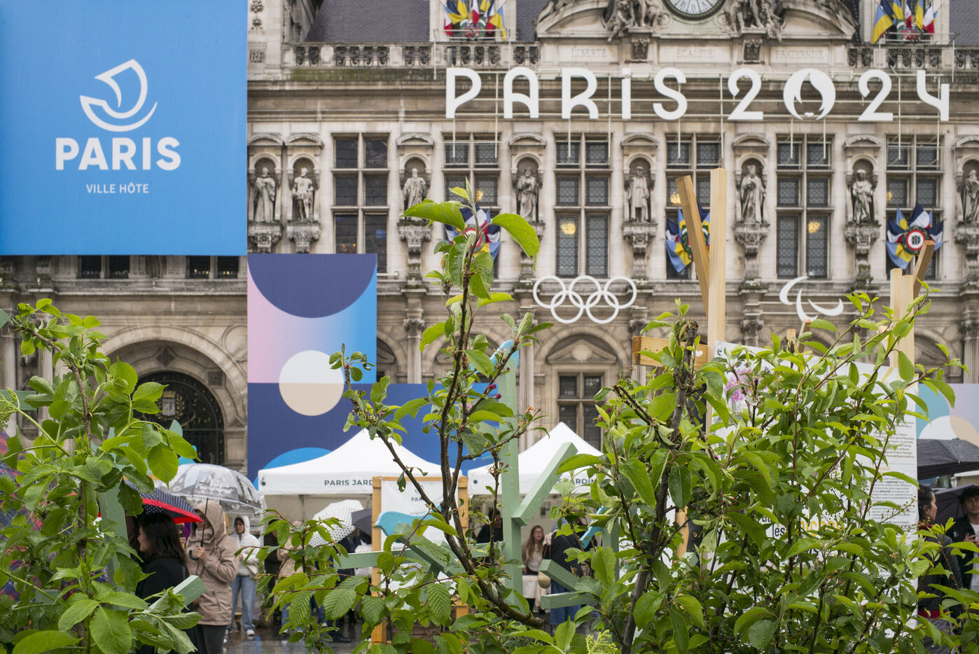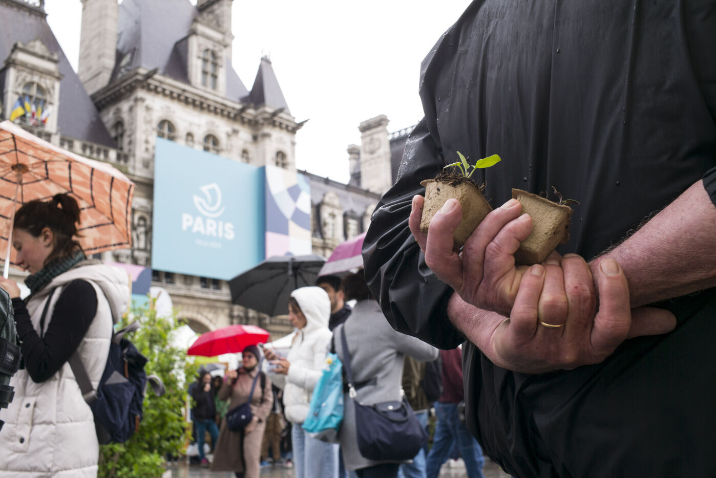 Paris celebrates spring in the rain on Place de l'Hotel de Ville. The City of Paris is distributing seed packets and seedlings of local plants to Parisians who want to help green the city and promote biodiversity in the capital.
