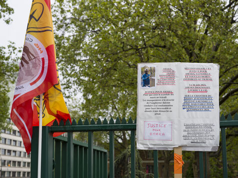 A tribute was organised in Albert Tournaire Square, for justice for Amara, with his family, colleagues and friends .... Worker killed on an Olympic Games site, victim of serious safety violations.