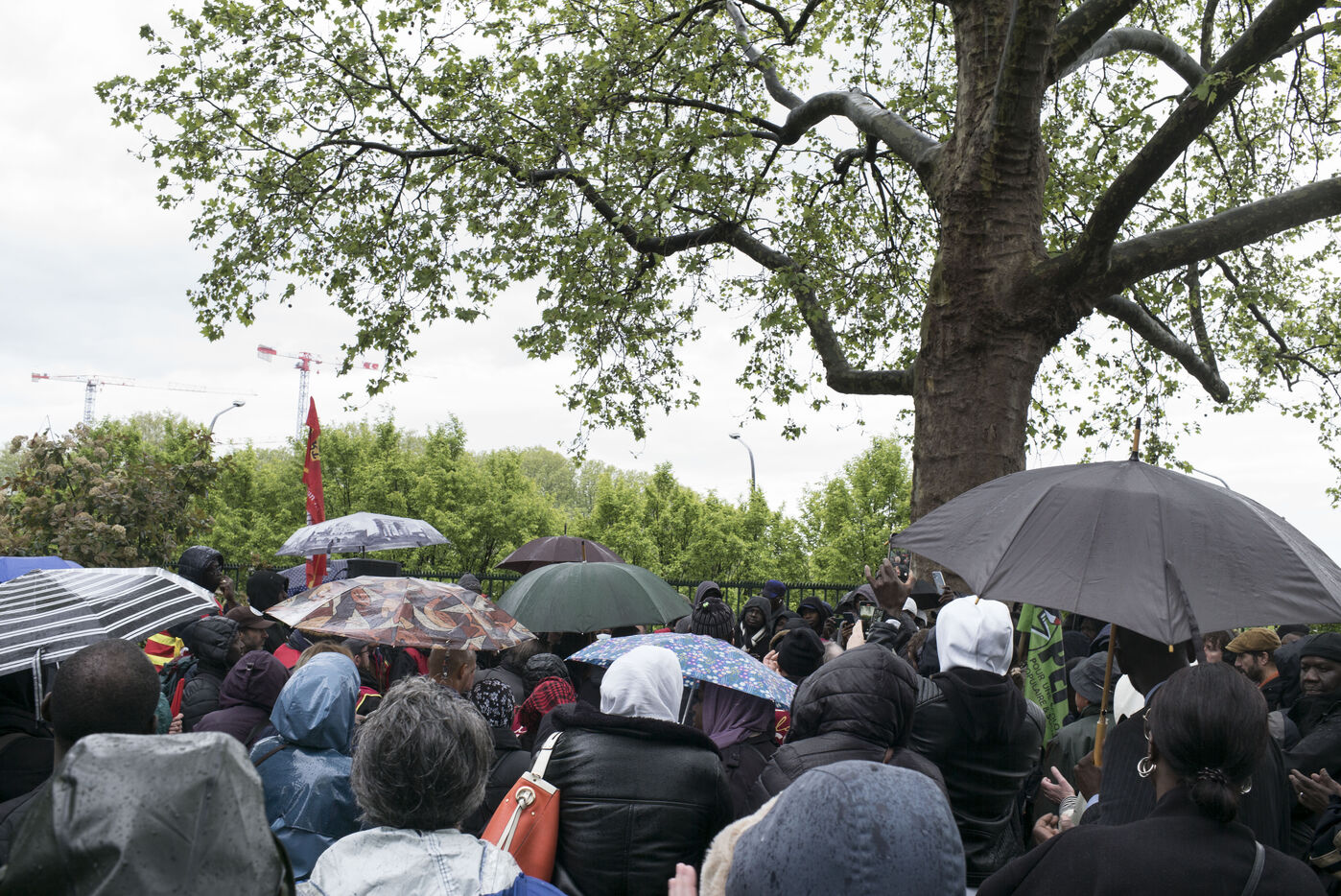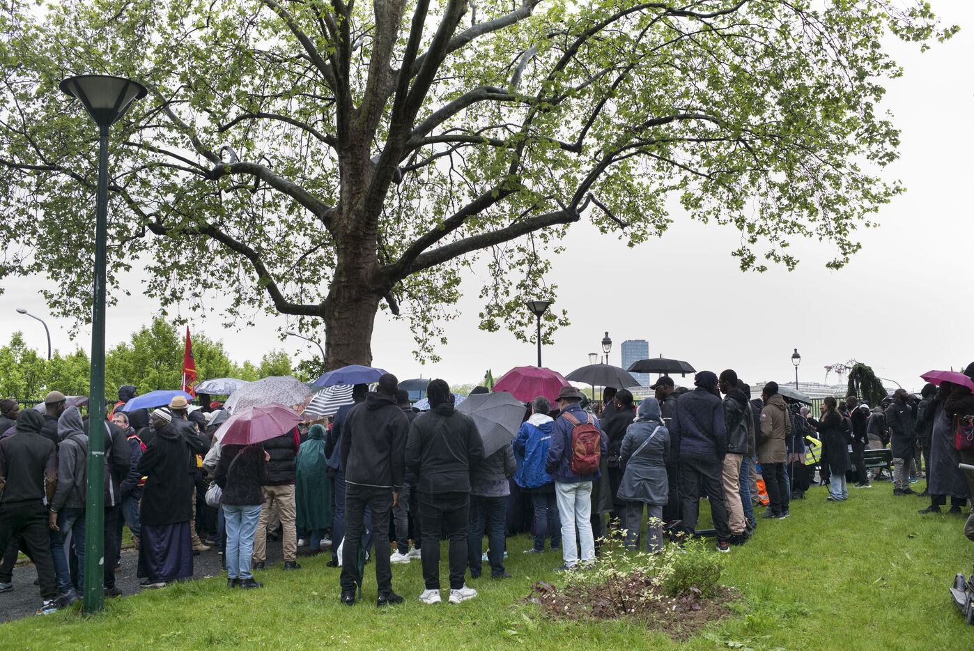 Un hommage était organisé square Albert Tournaire, pour la justice pour Amara avec sa famille, ses collègues, ses amis .... Travailleur, mort sur un chantier des Jeux Olympiques, victime de graves manquements à la sécurité.