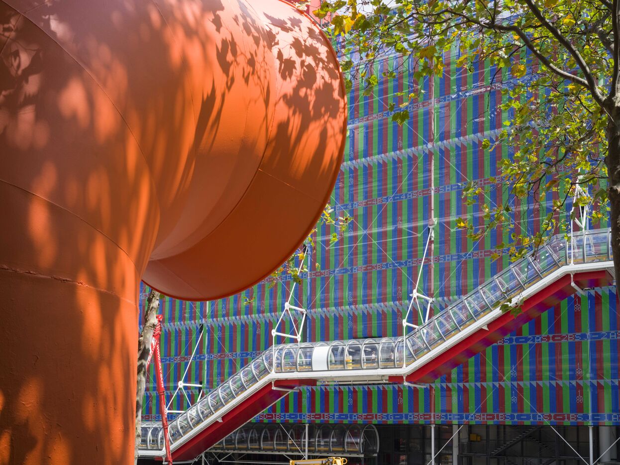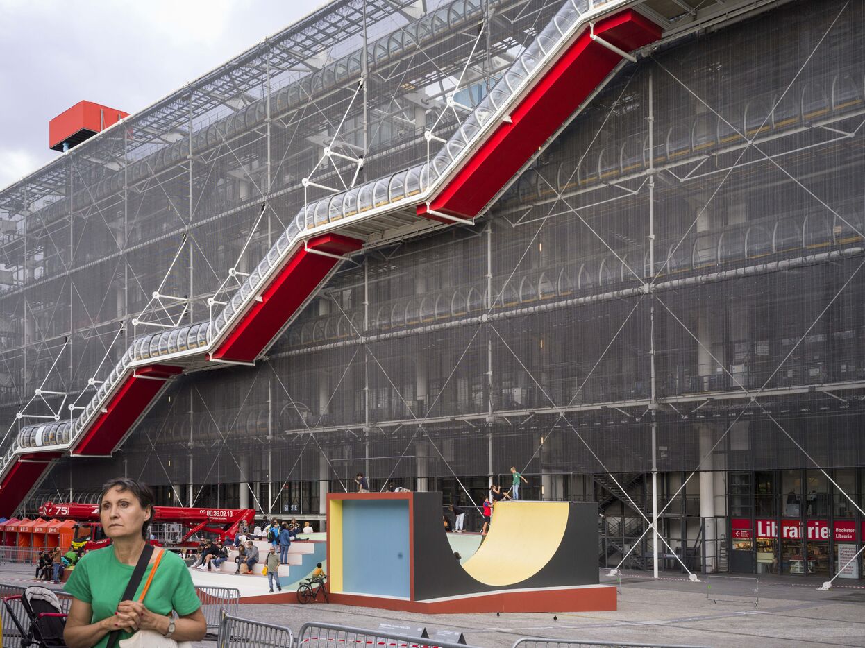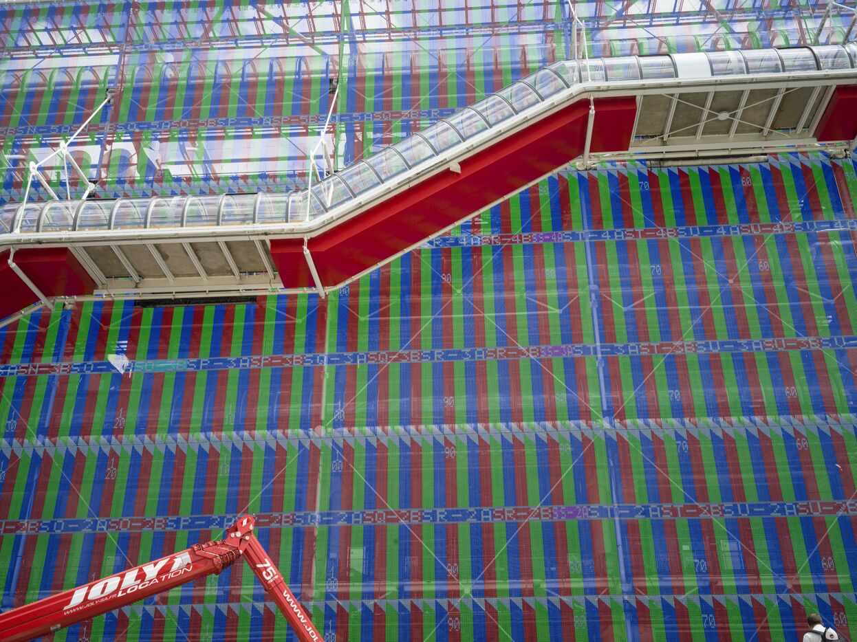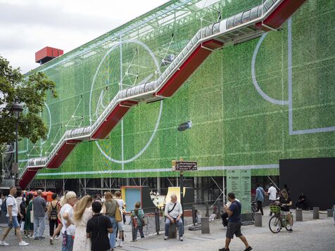 While the museum is due to close in 2025 for five years of renovation work, the façade overlooking the esplanade is clad with a LED advertising screen for the Olympic Games.
