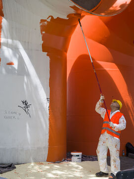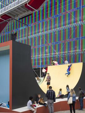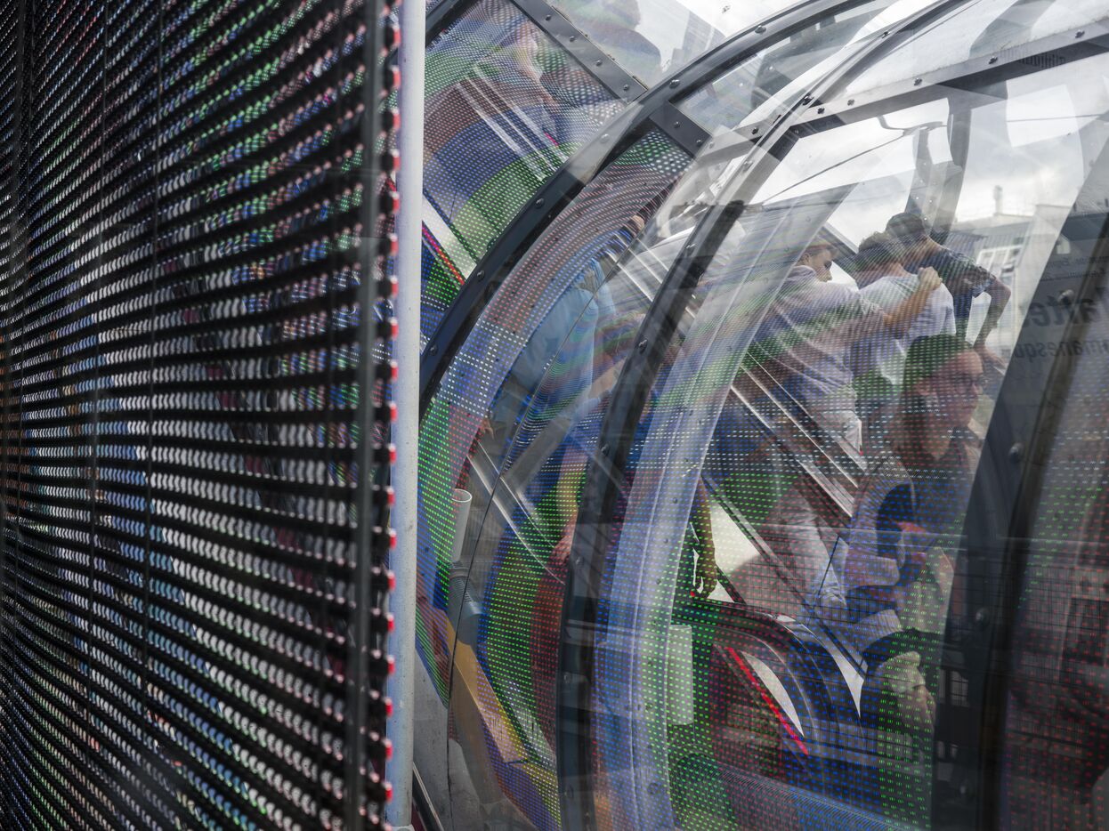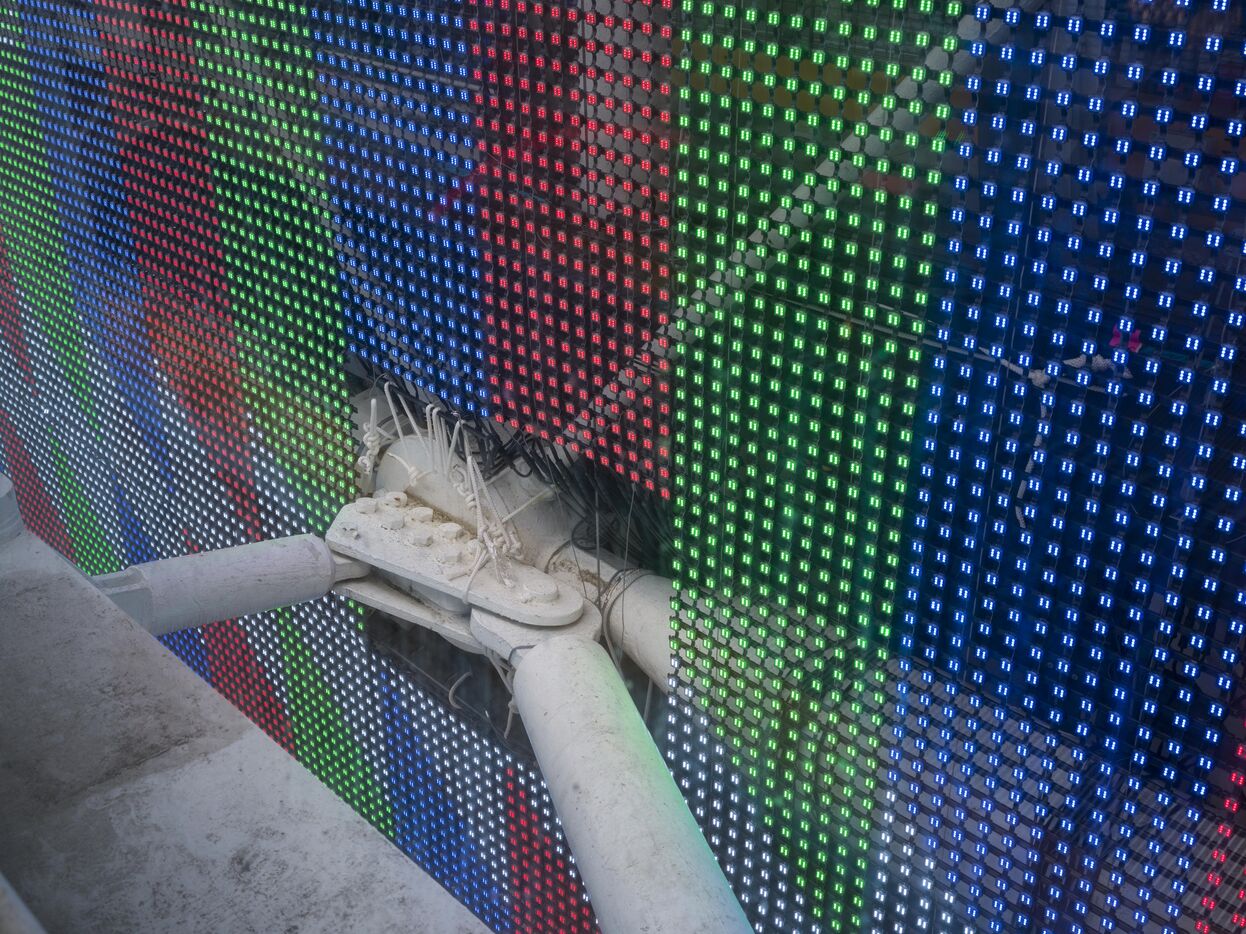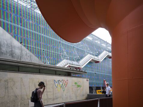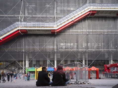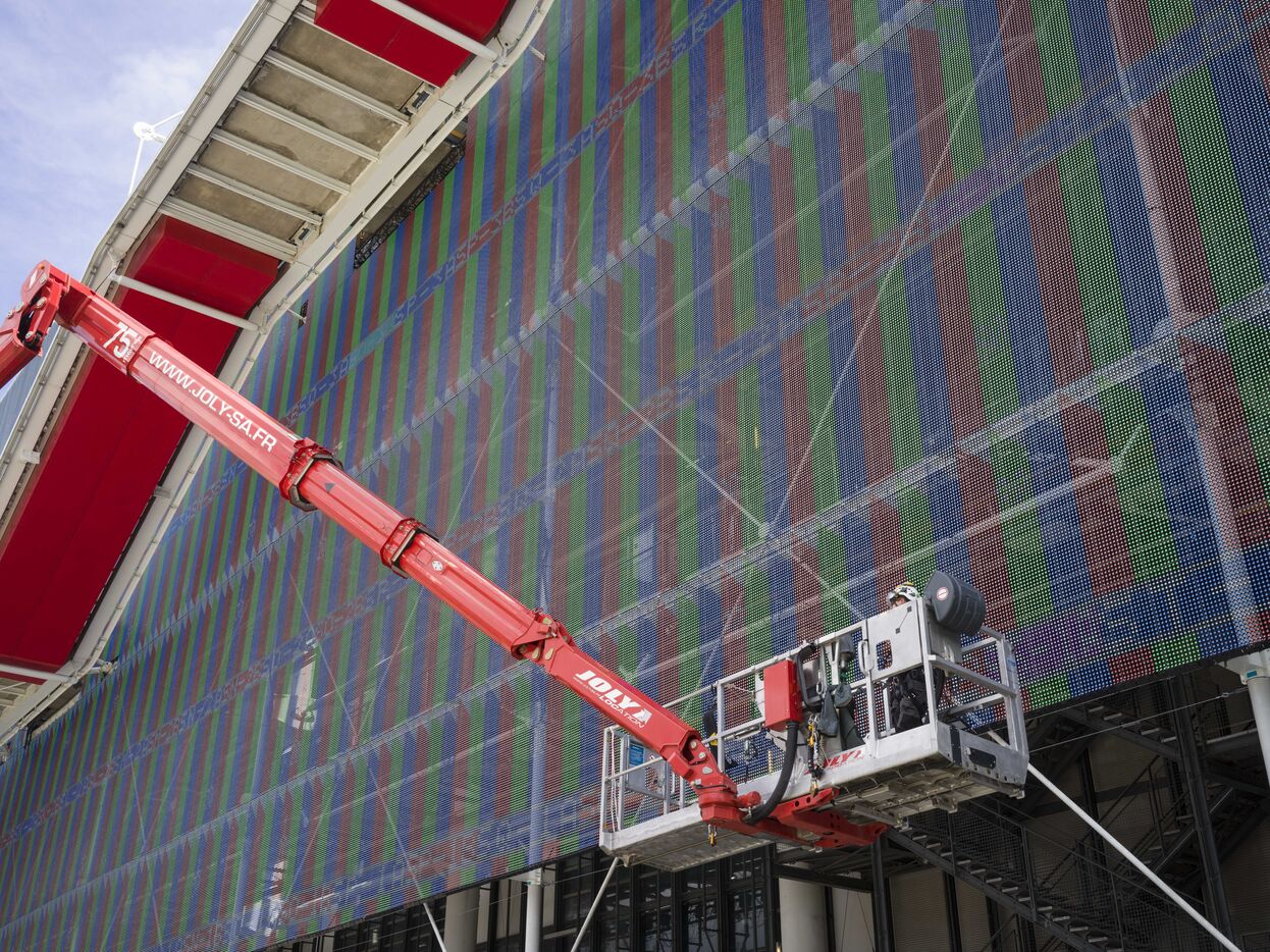 While the museum is due to close in 2025 for five years of renovation work, the façade overlooking the esplanade is clad with a LED advertising screen for the Olympic Games.