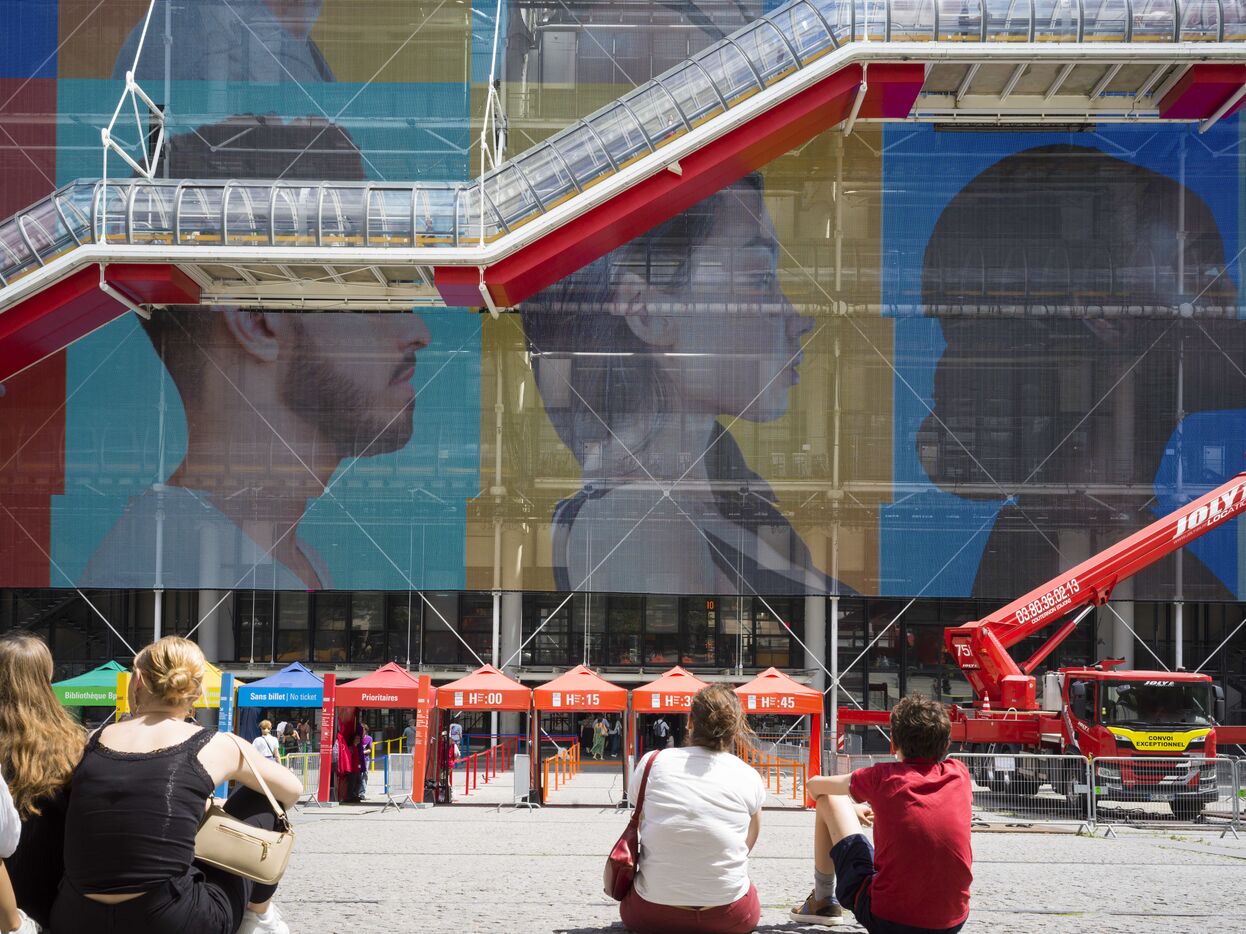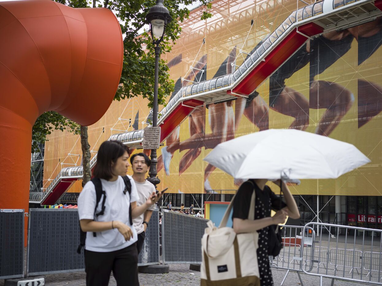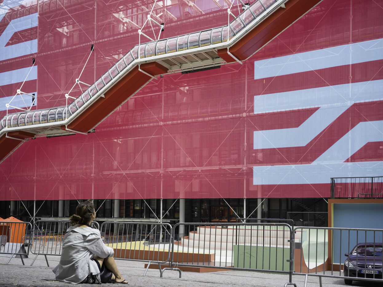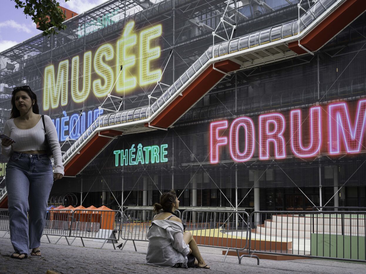 Alors que le musée doit fermer en 2025 pour cinq ans de travaux, la façade donnant sur l?esplanade est habillée par un écran publicitaire à led pour les Jeux Olympiques.