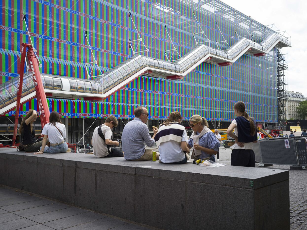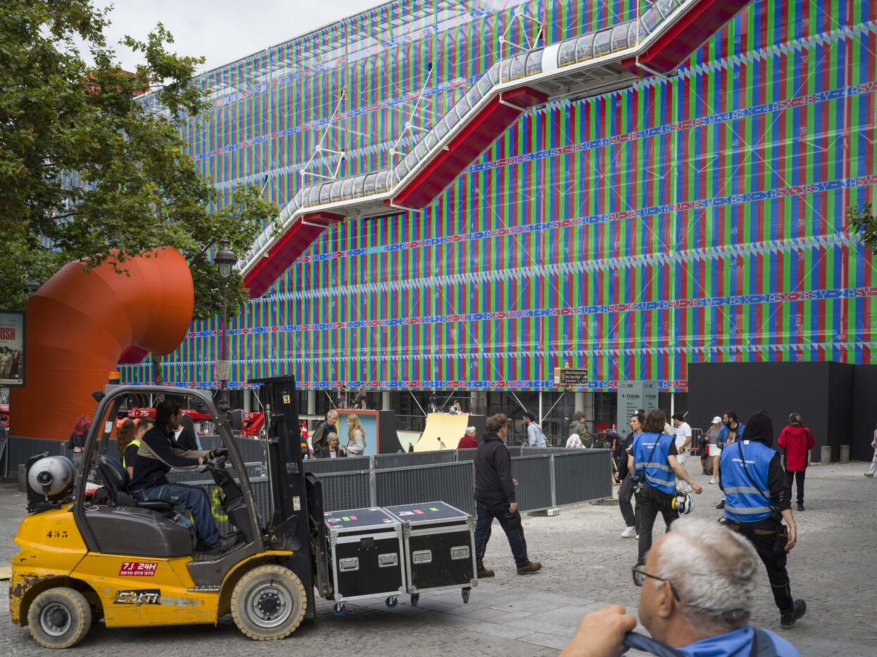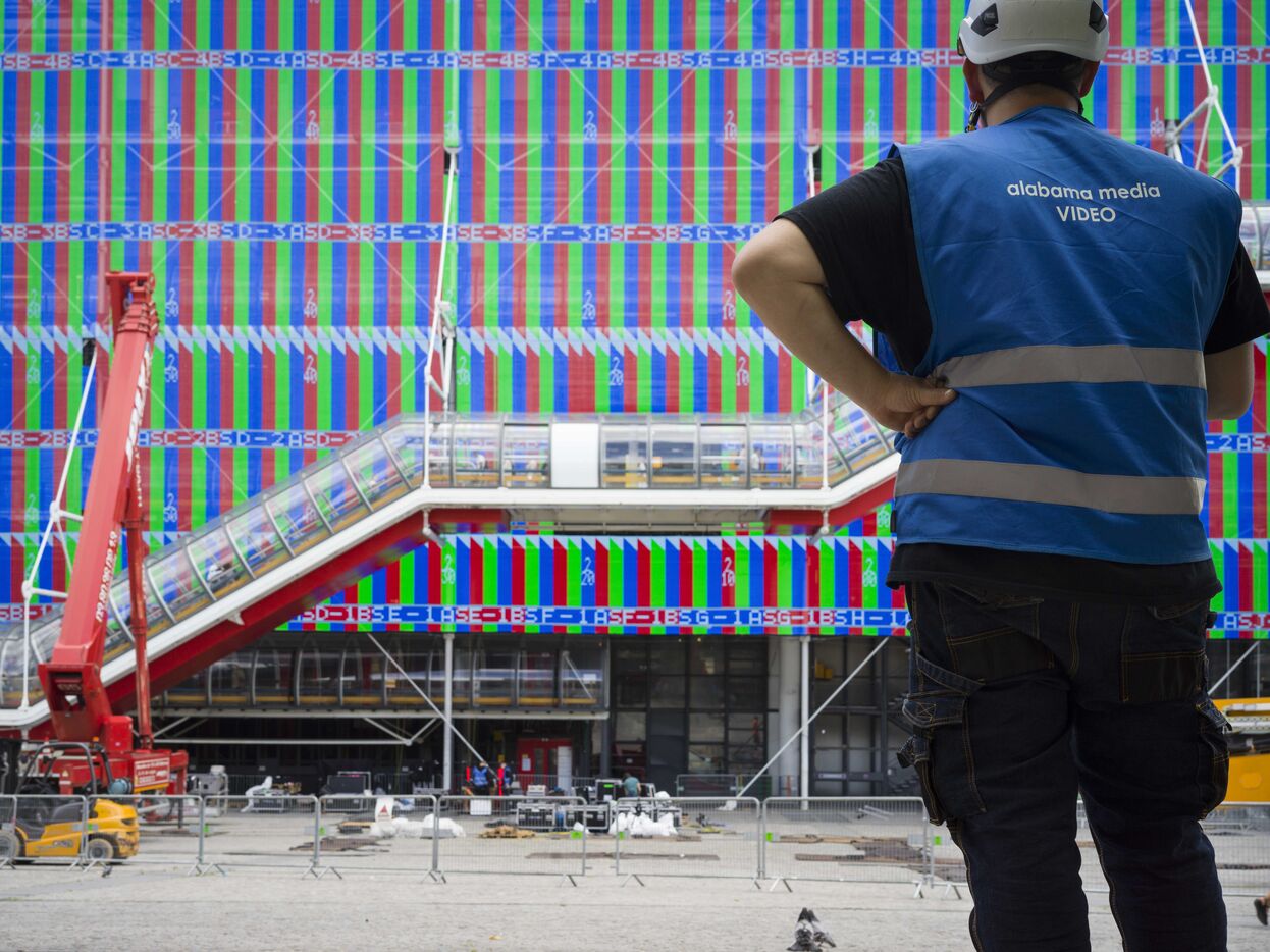Alors que le musée doit fermer en 2025 pour cinq ans de travaux, la façade donnant sur l?esplanade est habillée par un écran publicitaire à led pour les Jeux Olympiques.