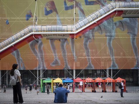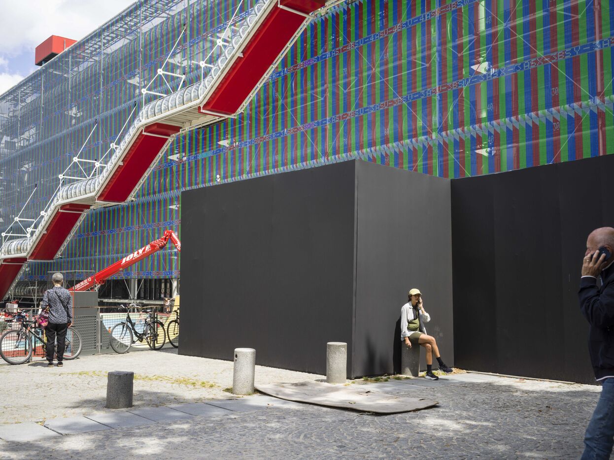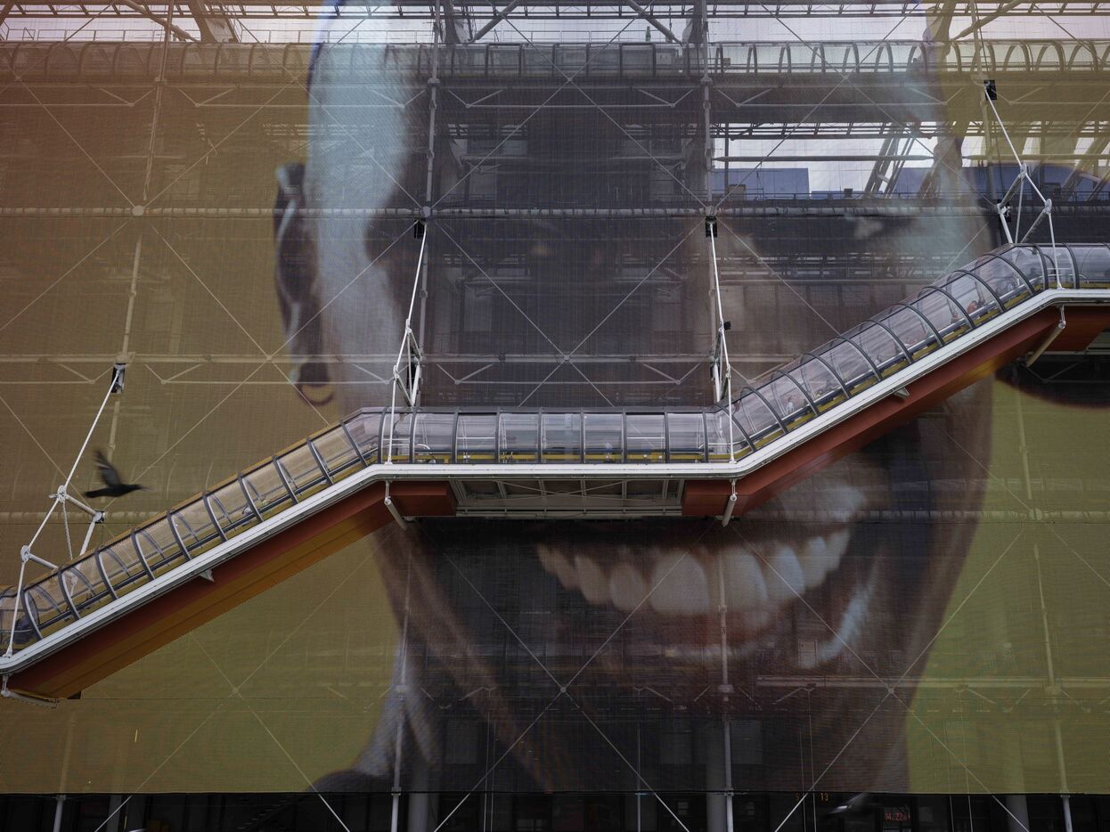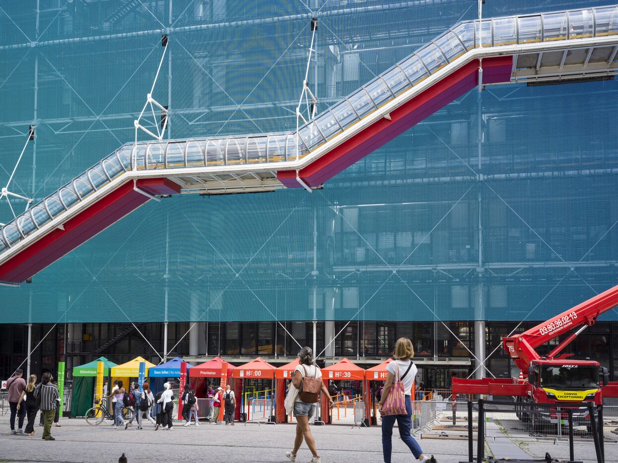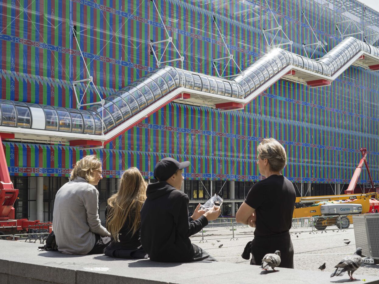 Alors que le musée doit fermer en 2025 pour cinq ans de travaux, la façade donnant sur l?esplanade est habillée par un écran publicitaire à led pour les Jeux Olympiques.