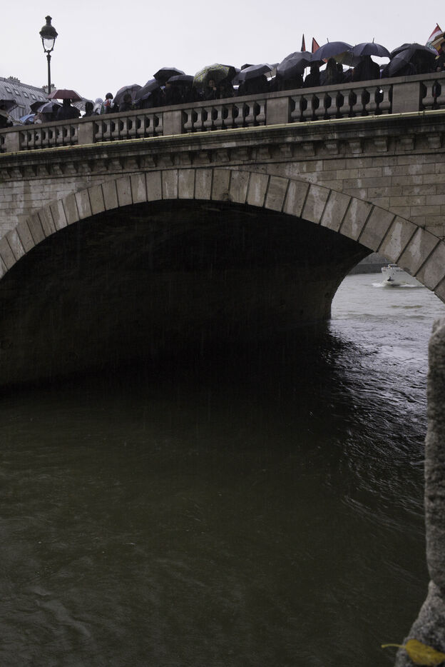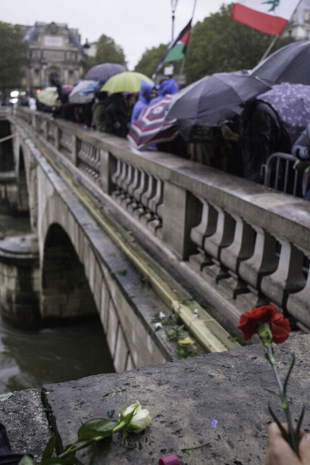 A gathering on the Pont Saint Michel to pay tribute to the Algerians killed and thrown into the Seine on 17 October 1961 under the authority of Prefect Maurice Papon