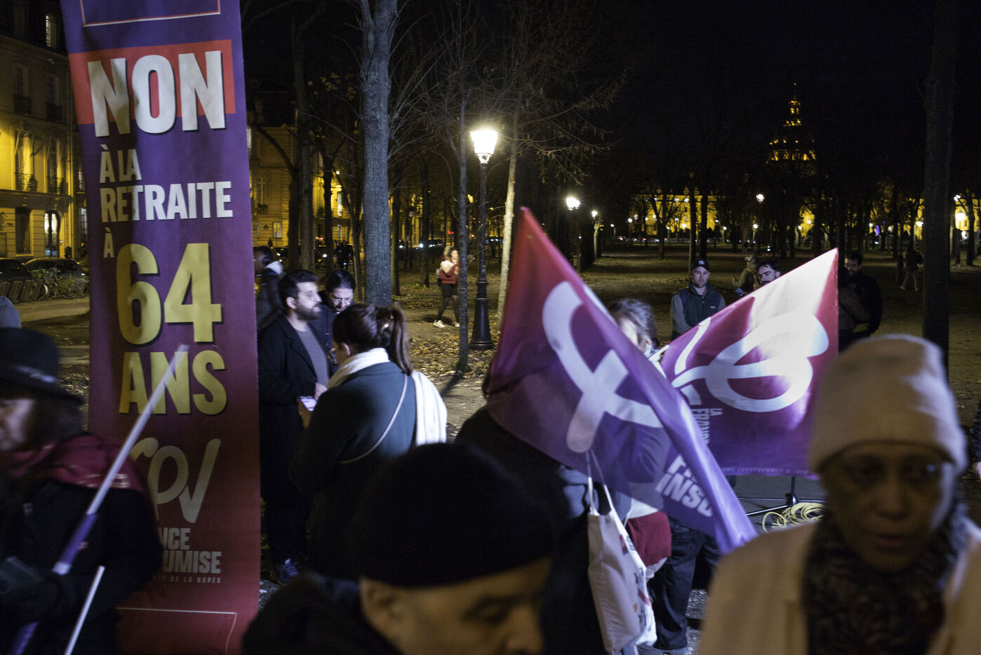 Lors de la niche parlementaire de la France Insoumise, l’Assemblée Nationale va débattre de la loi des retraites de Macron. Un rassemblement est organisé aux Invalides avec des prises de paroles.