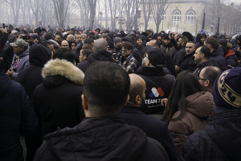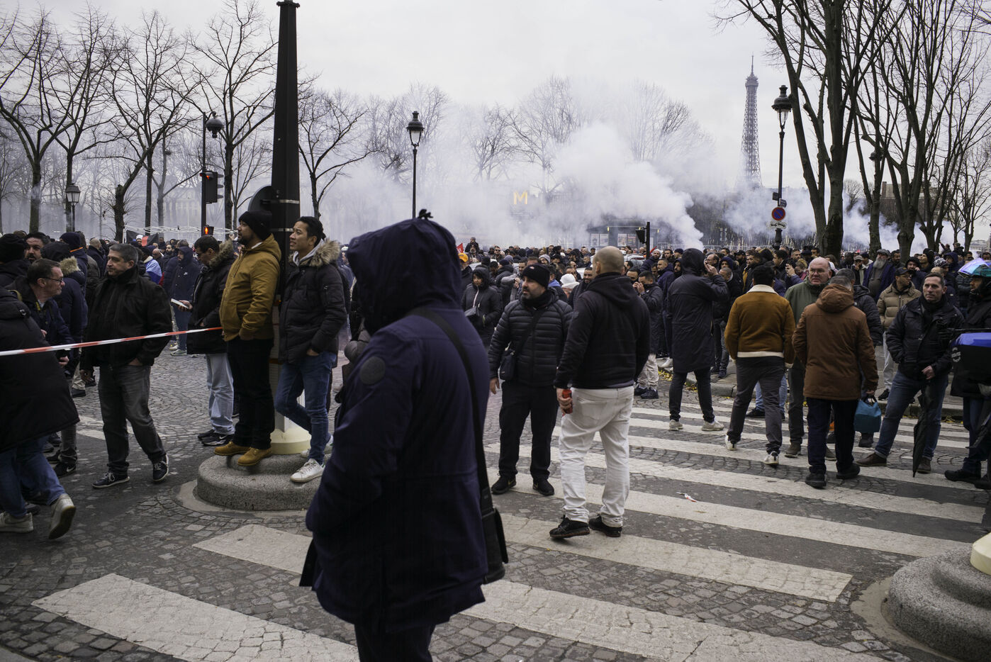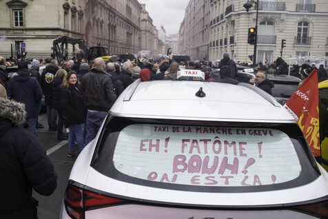 A rally, organised by striking taxi drivers, is being held on the Esplanade des Invalides to protest against new charges for transporting sick people.