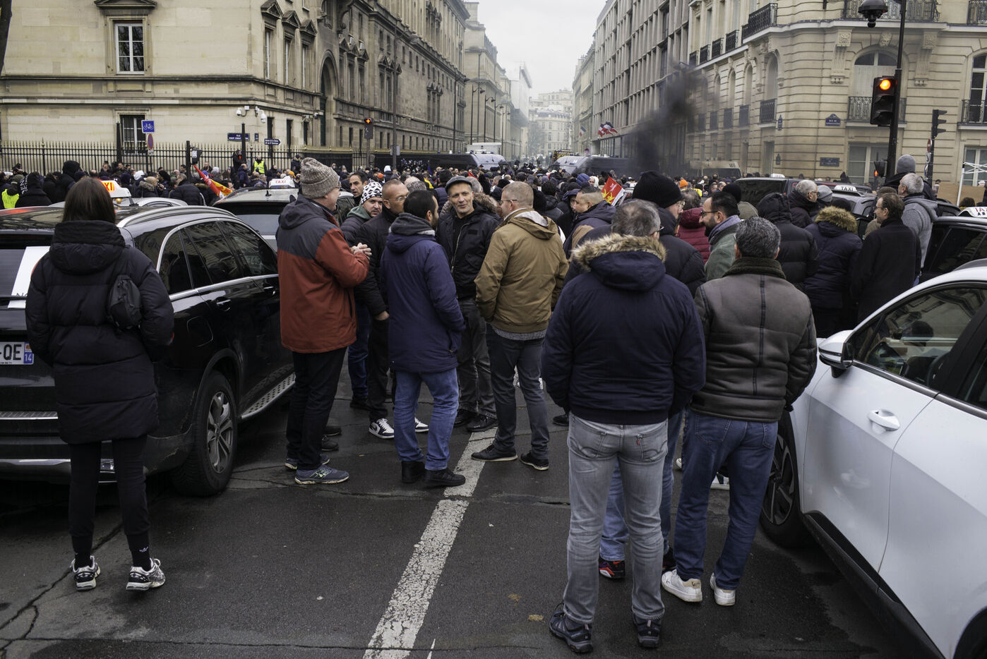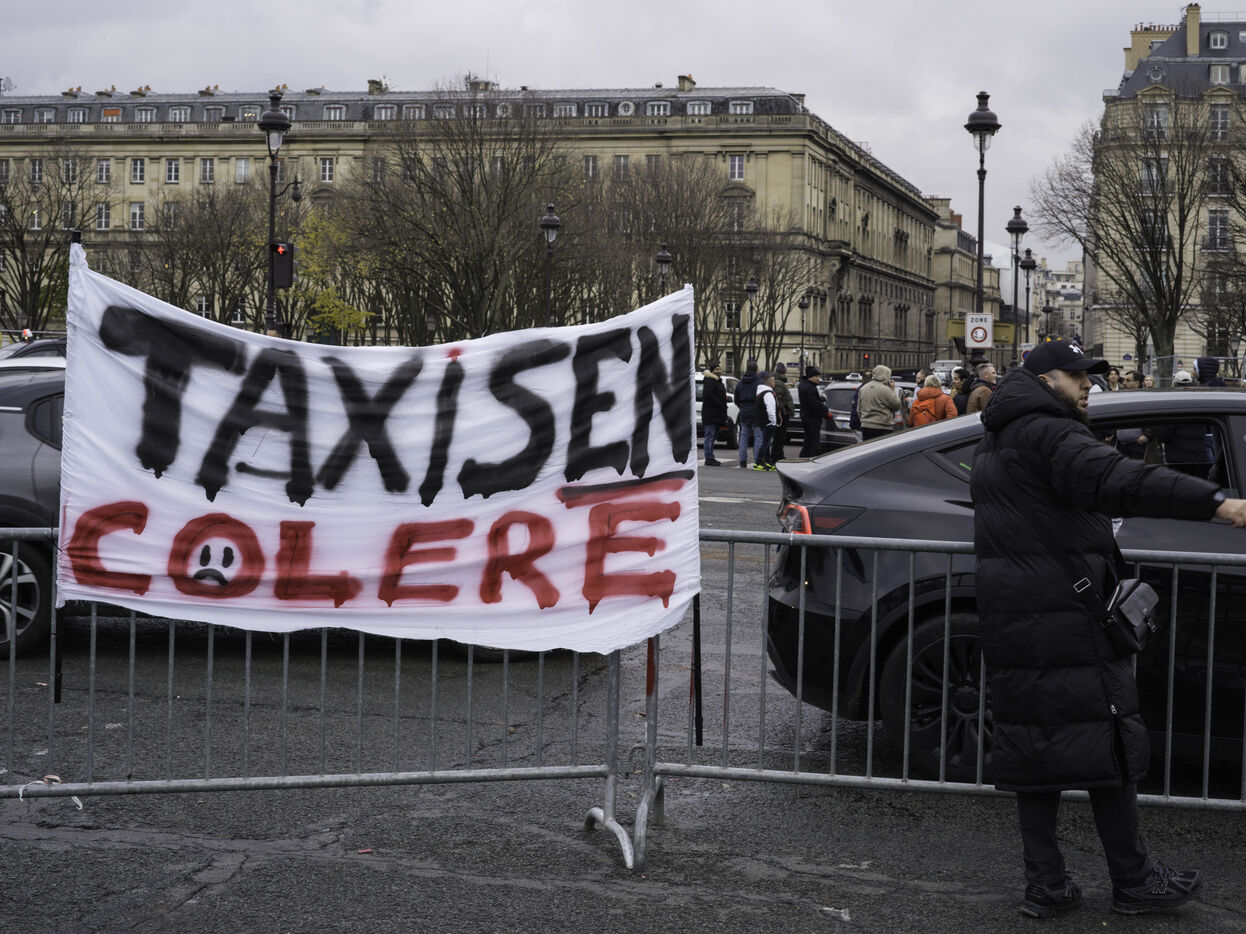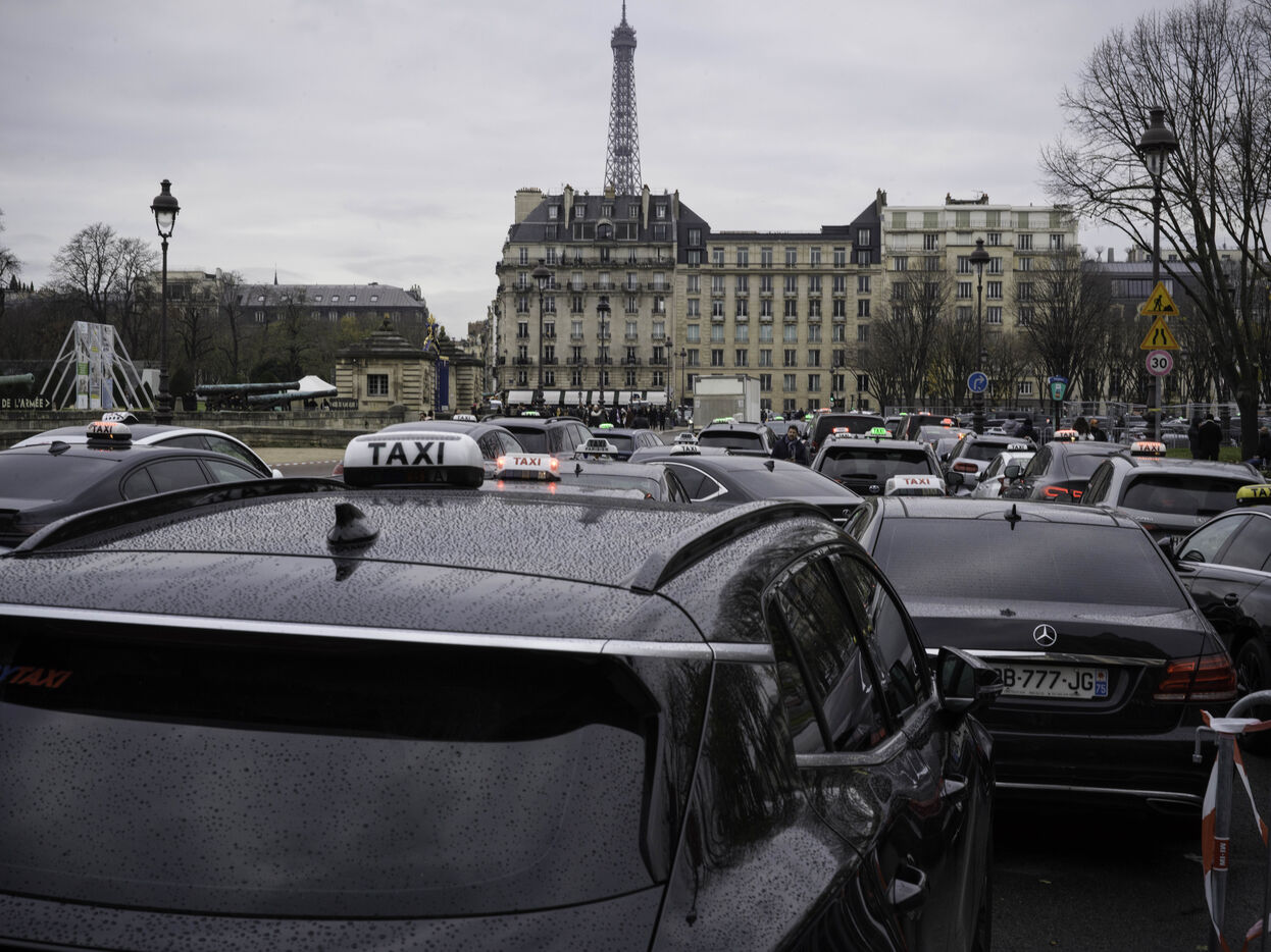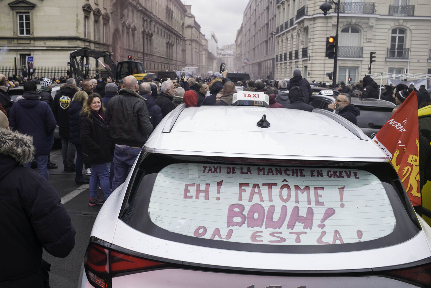 Un rassemblement, organisé par les chauffeurs de taxi en gréve, se tient sur l’Esplanade des Invalides pour protester contre une nouvelle tarification du transport des malades.