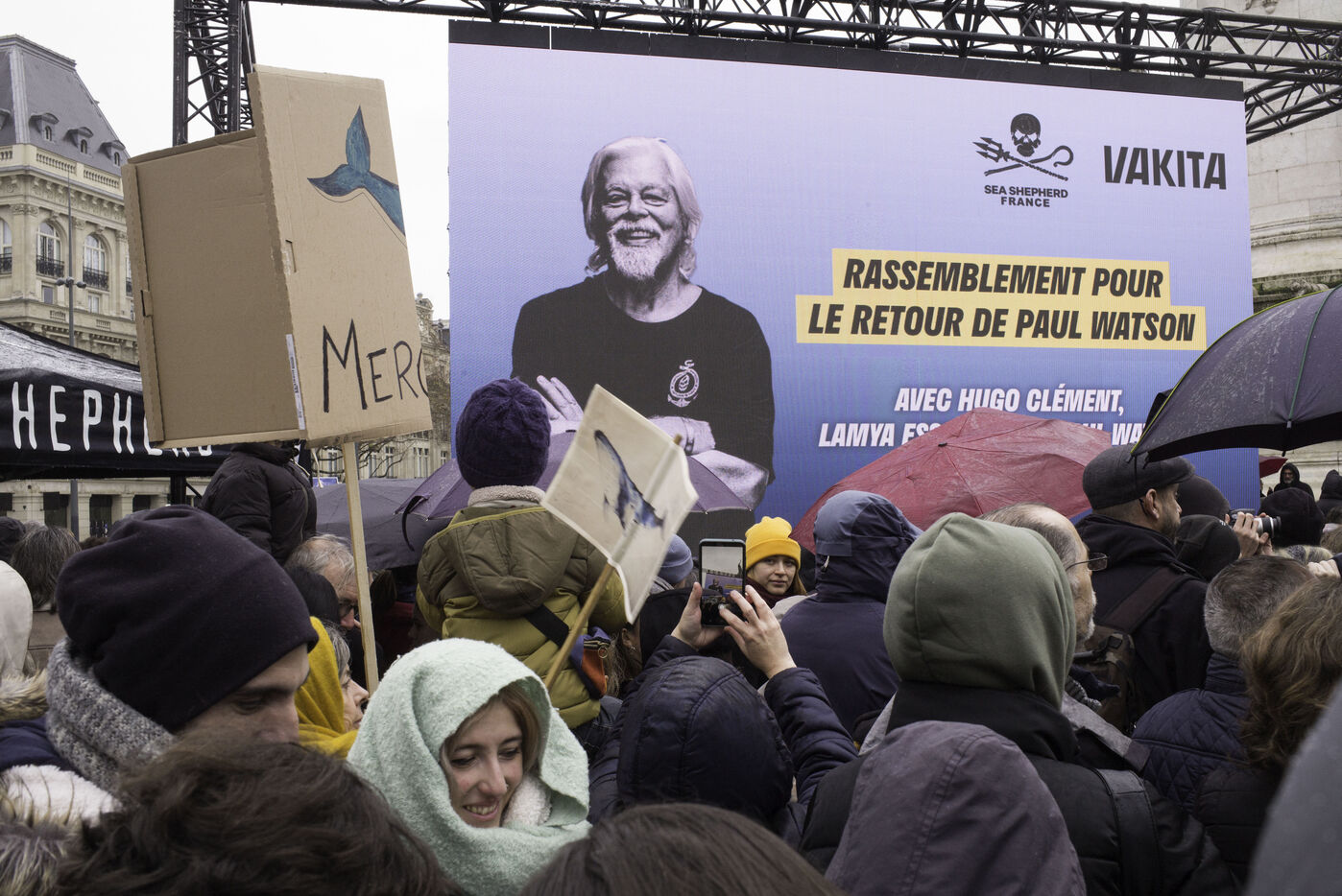 A rally has been organised on the Place de la République to celebrate the recent release of Paul Watson, who has been imprisoned in Greenland since July at Japan's request.