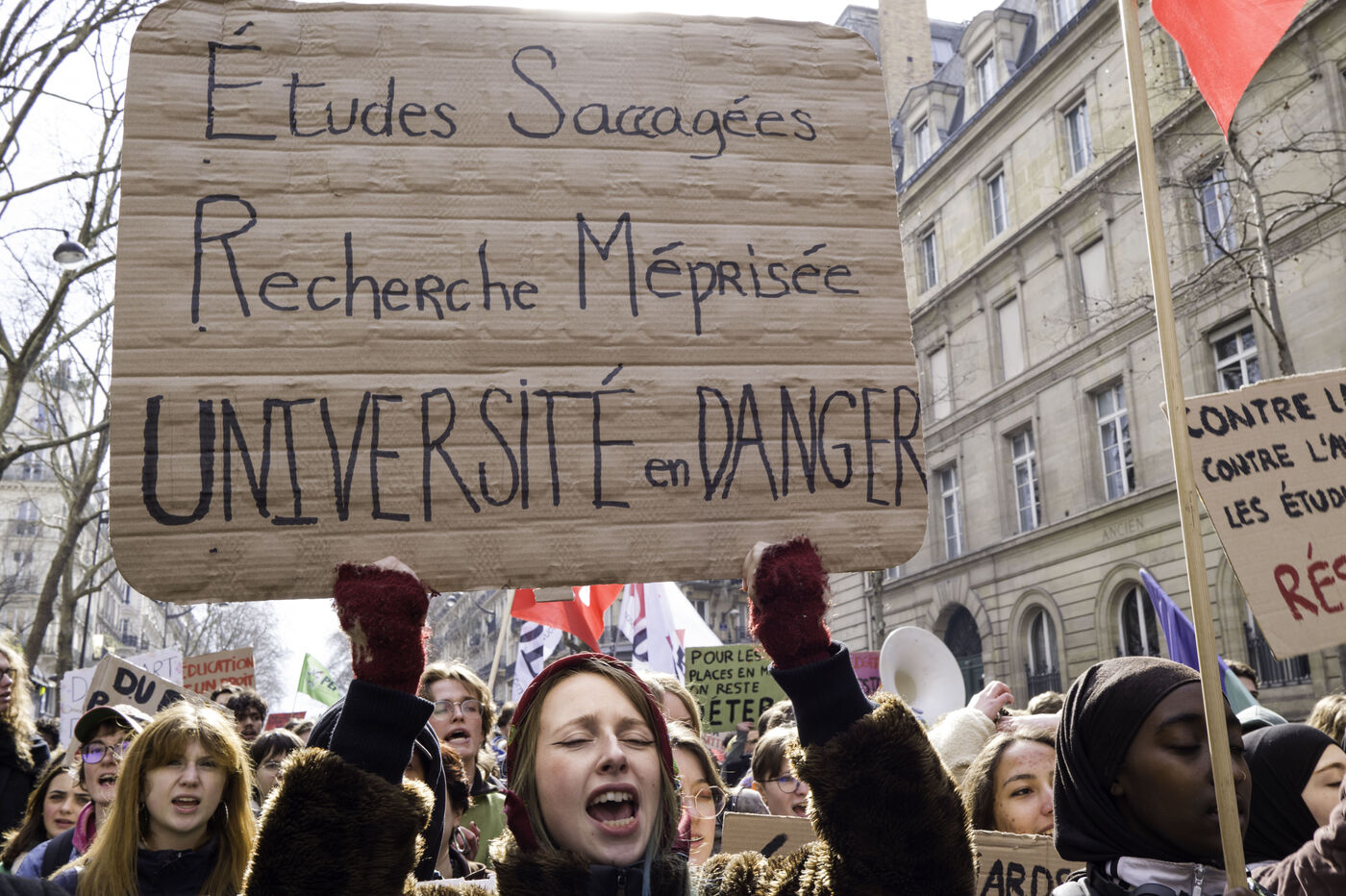 Contre l’austérité du budget dans l’enseignement supérieur et la recherche, une manifestation d’étudiants démarre de la place de la Sorbonne.