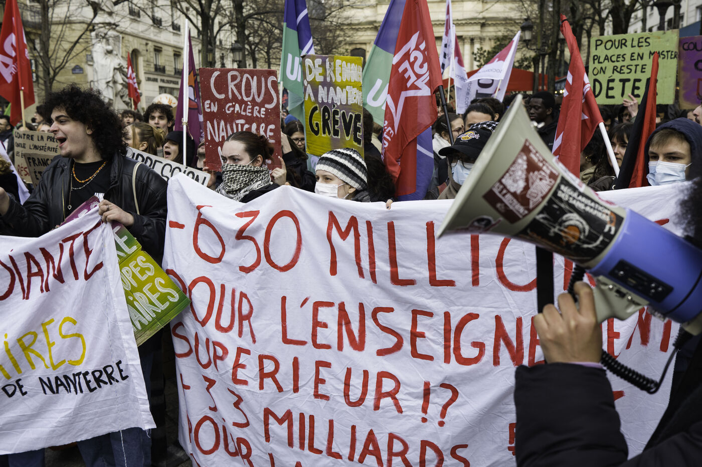 Against the austerity of the budget for higher education and research, a student demonstration starts from the Place de la Sorbonne.