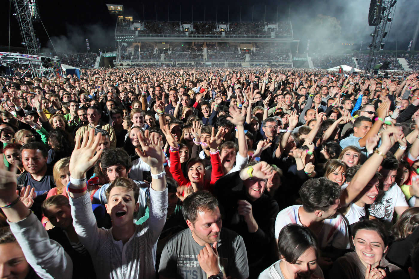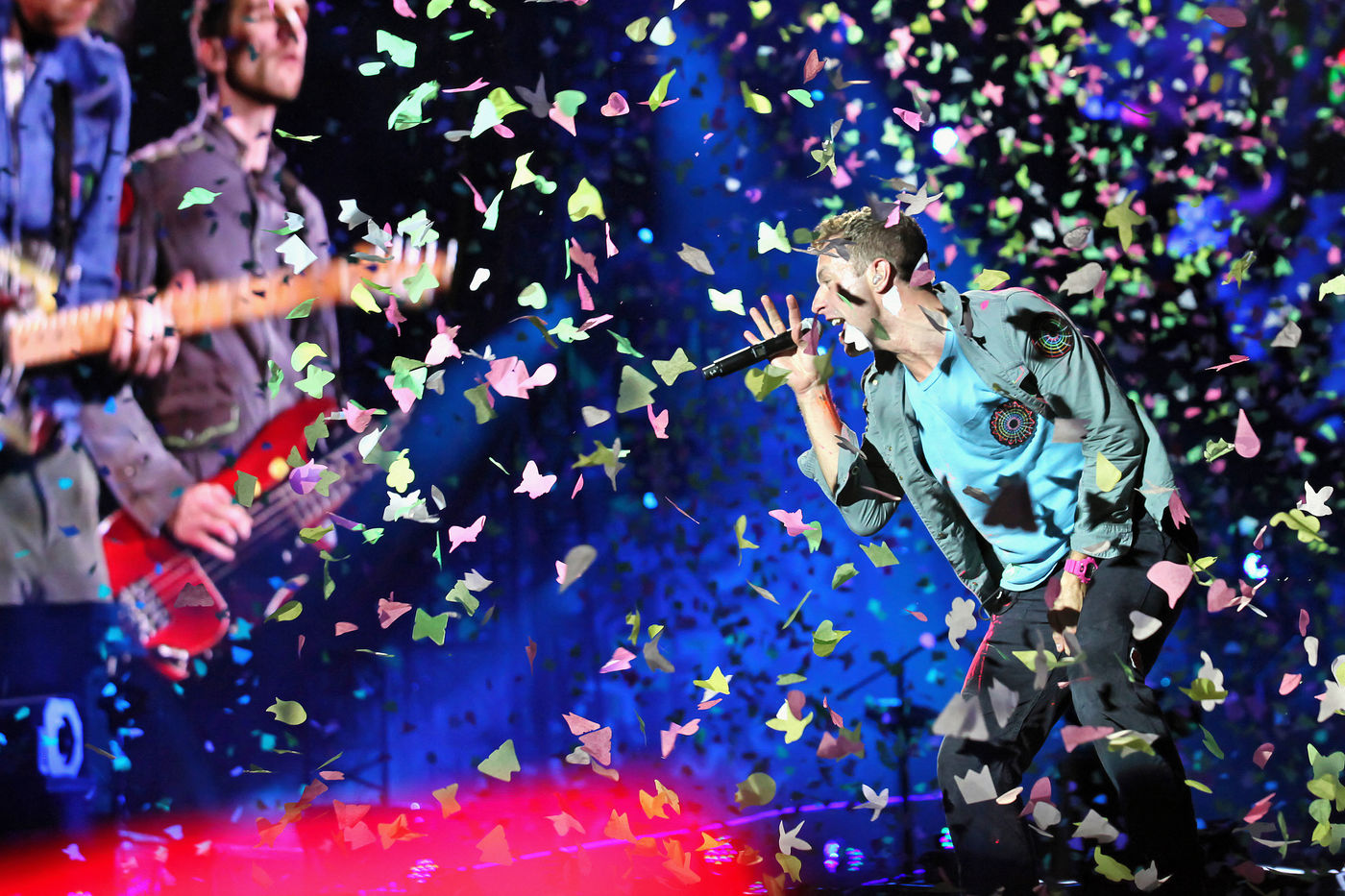 Concert du groupe britanique Coldplay, pour la tournee Mylo Xyloto, au stade Charles Ehrmann de Nice, France - Le 22 mai 2012.