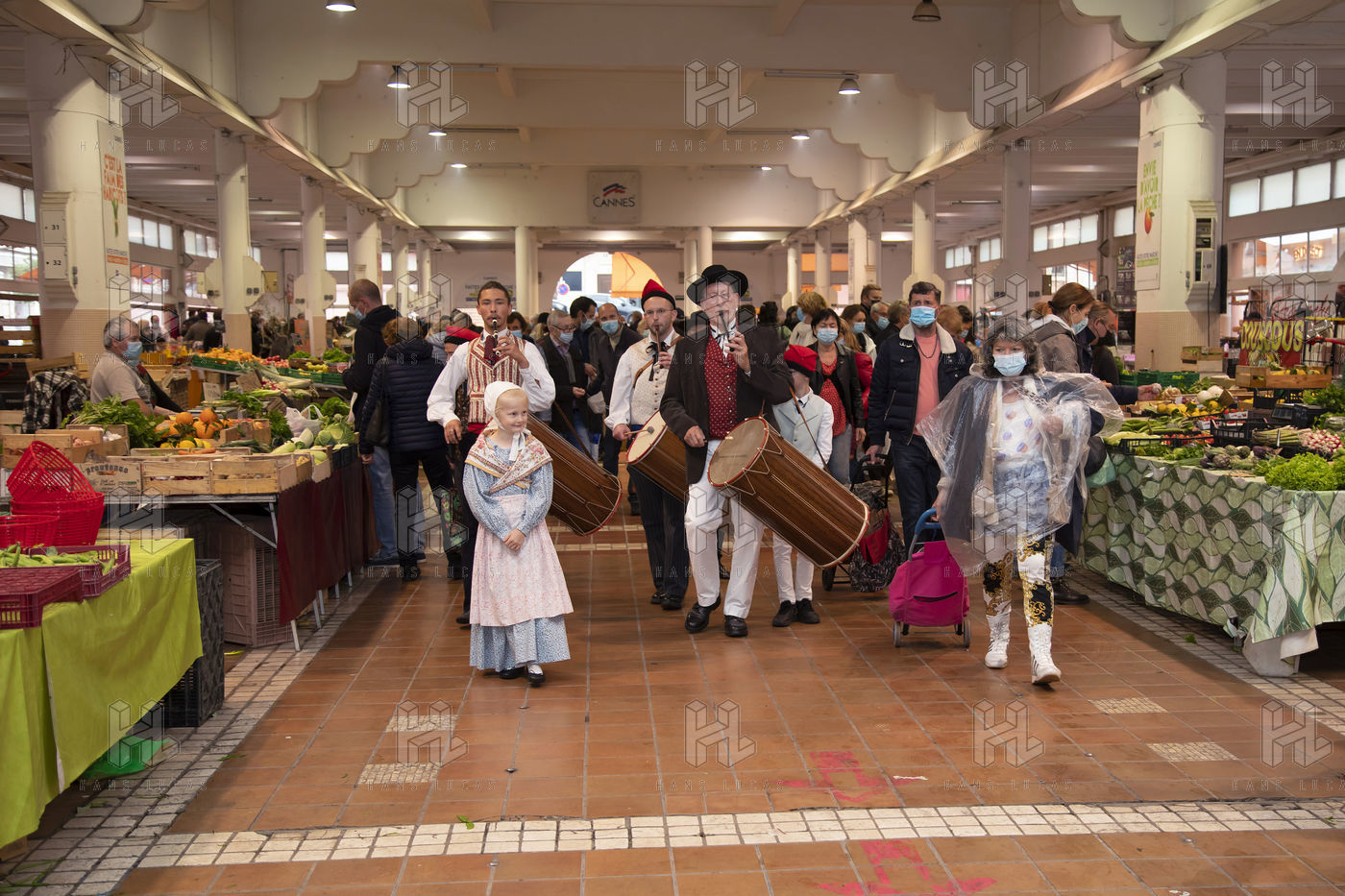 View of the Forville market during the health crisis. A folklore group plays Provençal music in the alleys of the market.