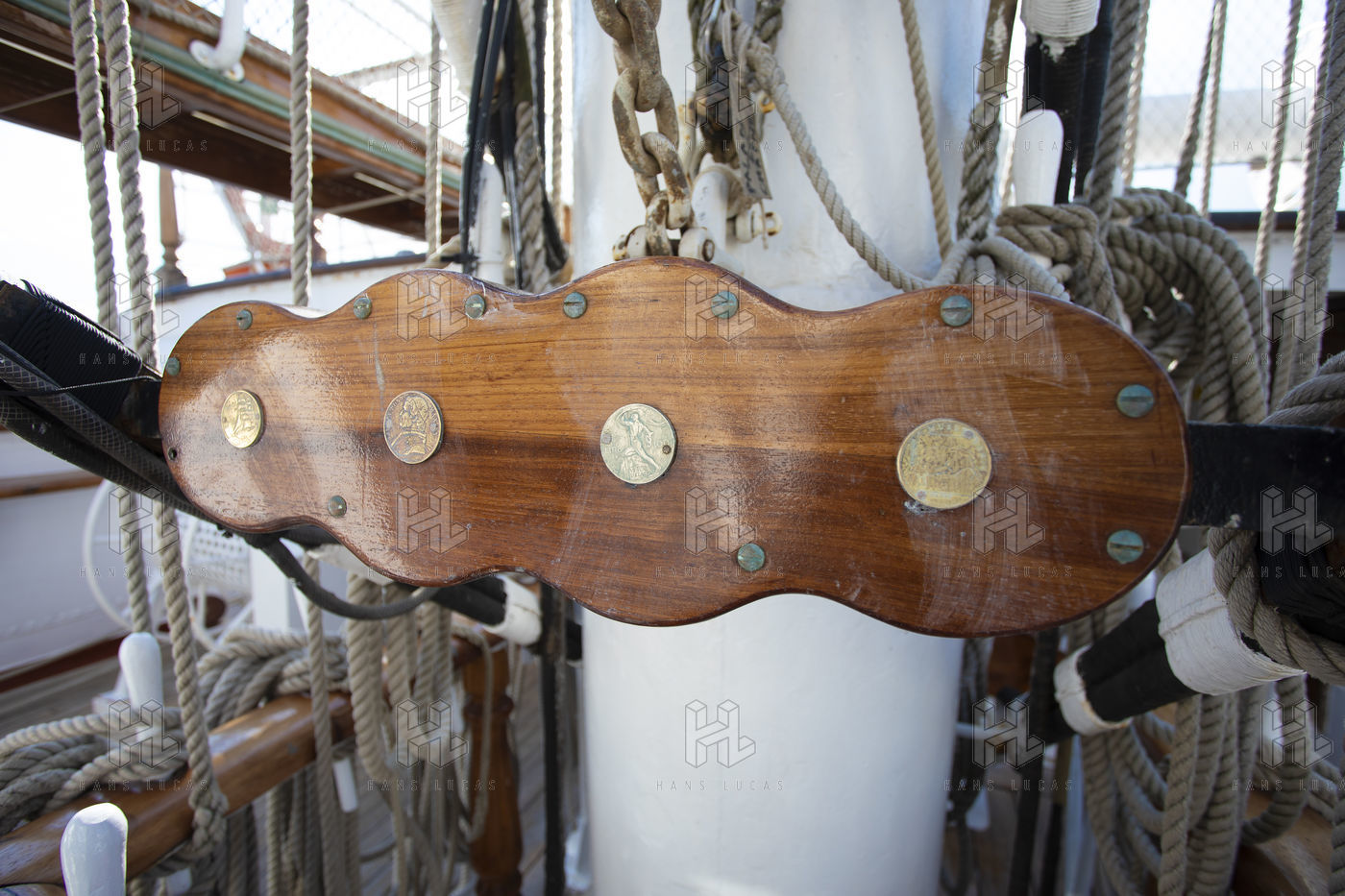 Visite du Belem en hivernage à Cannes. Le Belem (1896) qui fete cette année ses 125 ans, est le dernier trois-mâts barque français à coque acier, un des plus anciens trois-mâts en Europe en état de navigation et le second plus grand voilier restant en France.