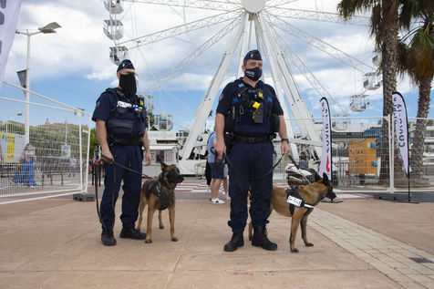 Présentation des chiens formés à la détection de la Covid-19 lors des grands evenements. Un dispositif inédit de la mairie de Cannes s'inscrivant dans le projet Comète pour lutter contre la propagation du coronavirus.