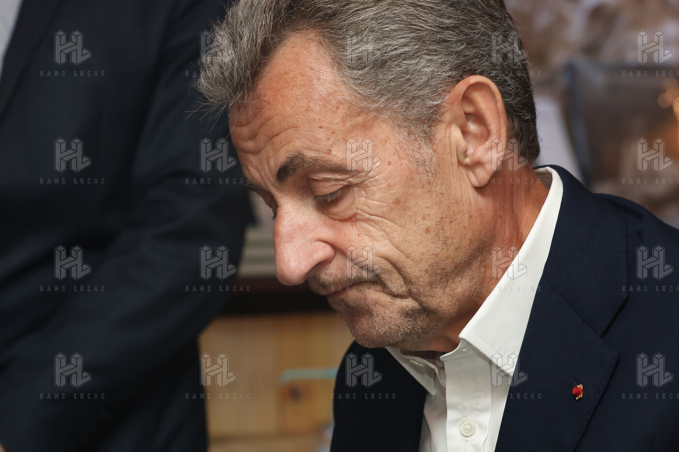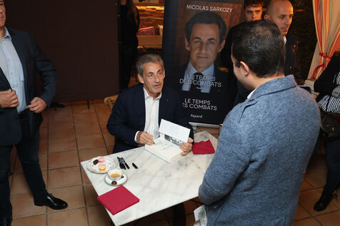 Former President of the French Republic Nicolas Sarkozy at the "Autour d'un livre" bookstore in Cannes to dedicate his latest book "Le temps des combats".