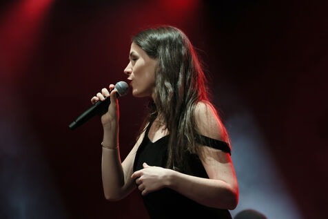 French singer Clara Yse performs on stage at MIDEM, the music industry trade fair, at the Palais des Festivals in Cannes.