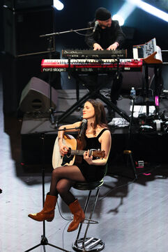 La chanteuse française Clara Ysé se produit sur la scène du MIDEM, le salon de l industrie musicale, au Palais des Festivals de Cannes.