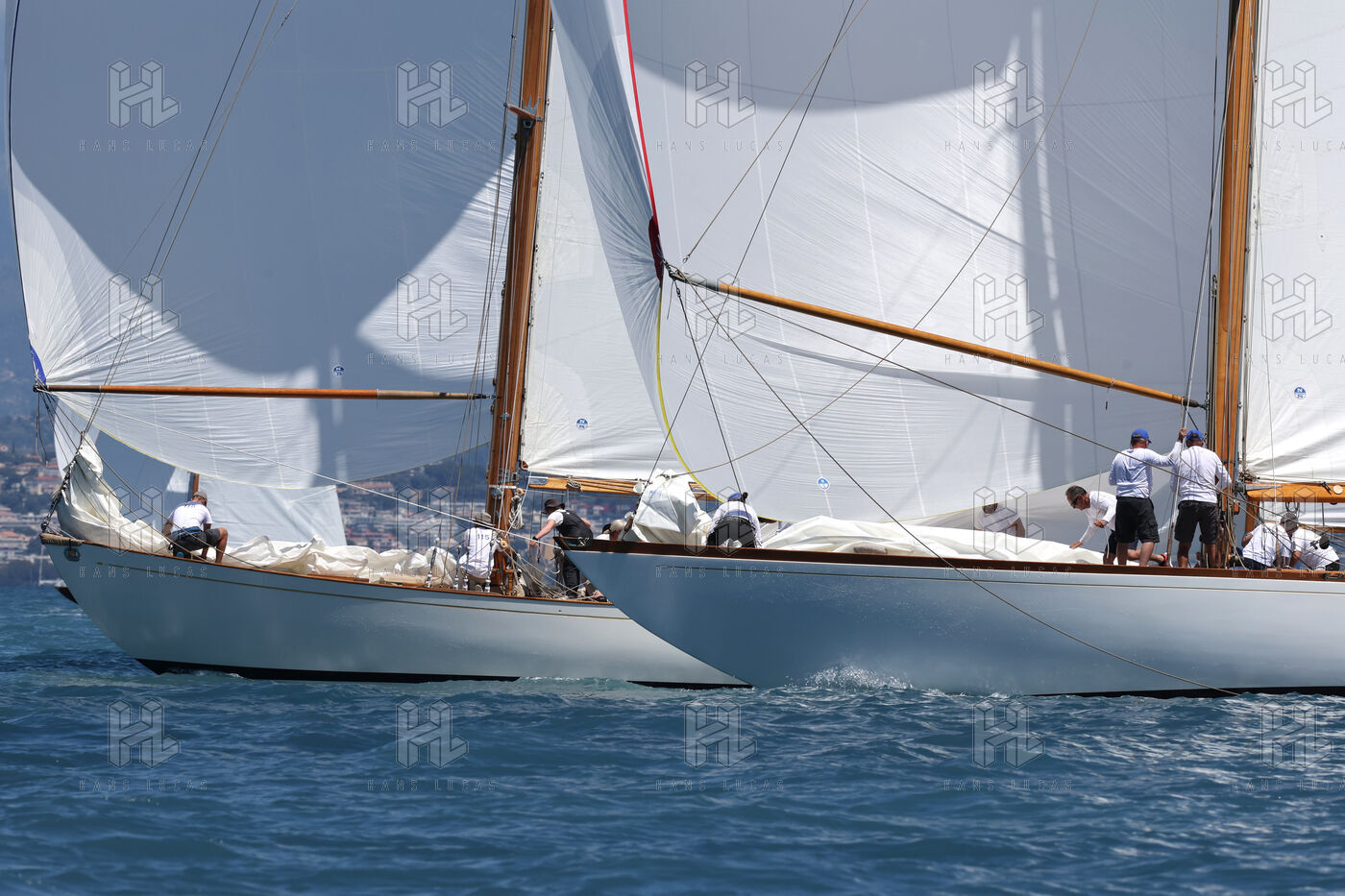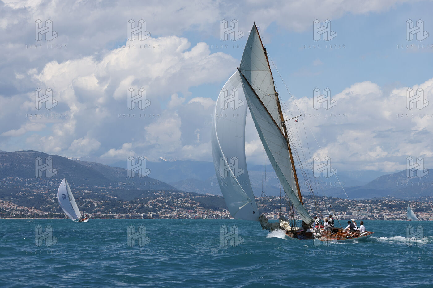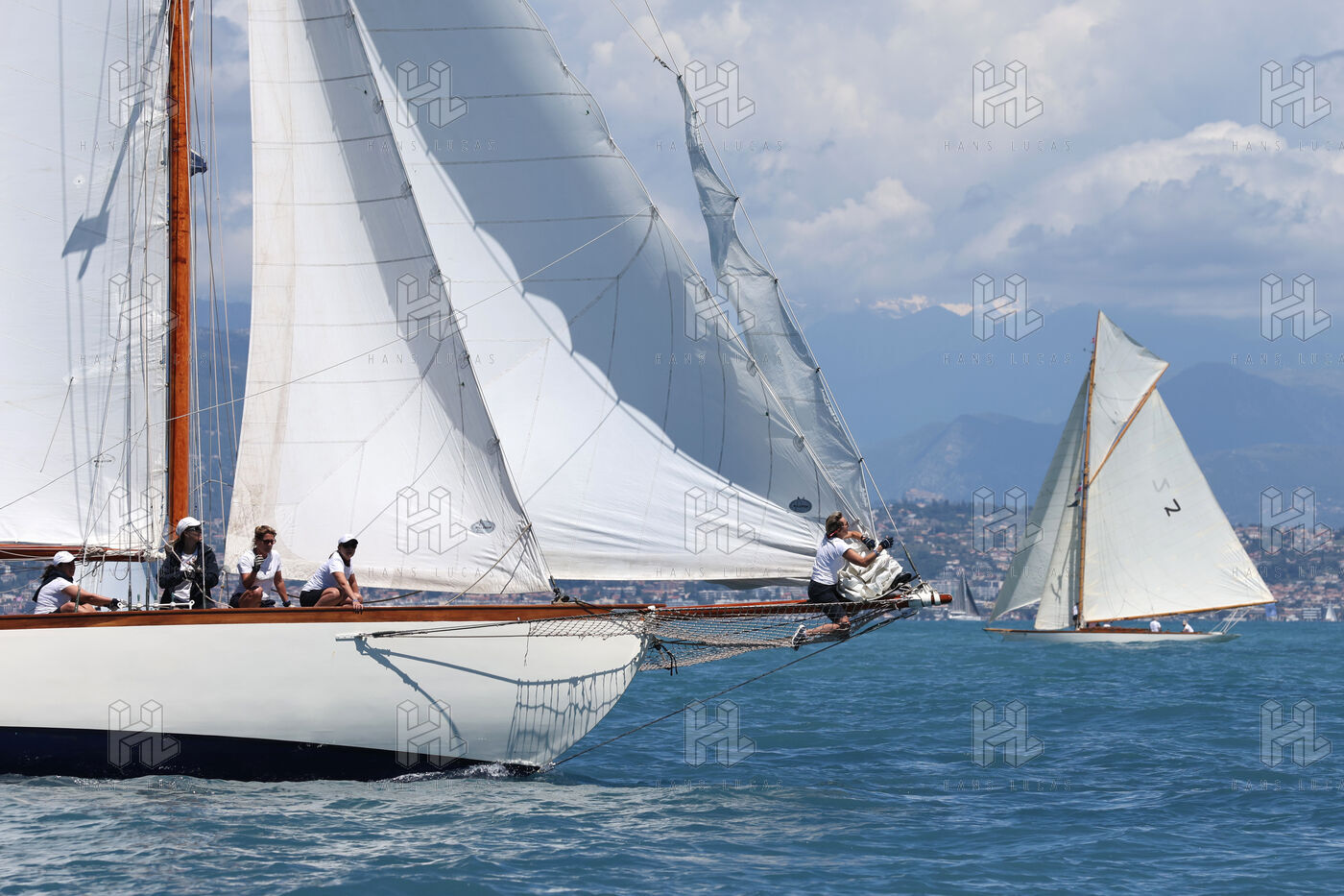 The crews compete on traditional sailboats during the 29th edition of the Voiles d'Antibes, where adventure and luxury combine in a sporting and friendly tradition.