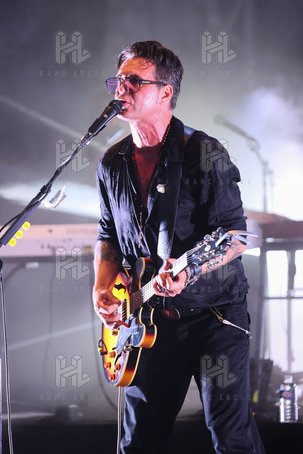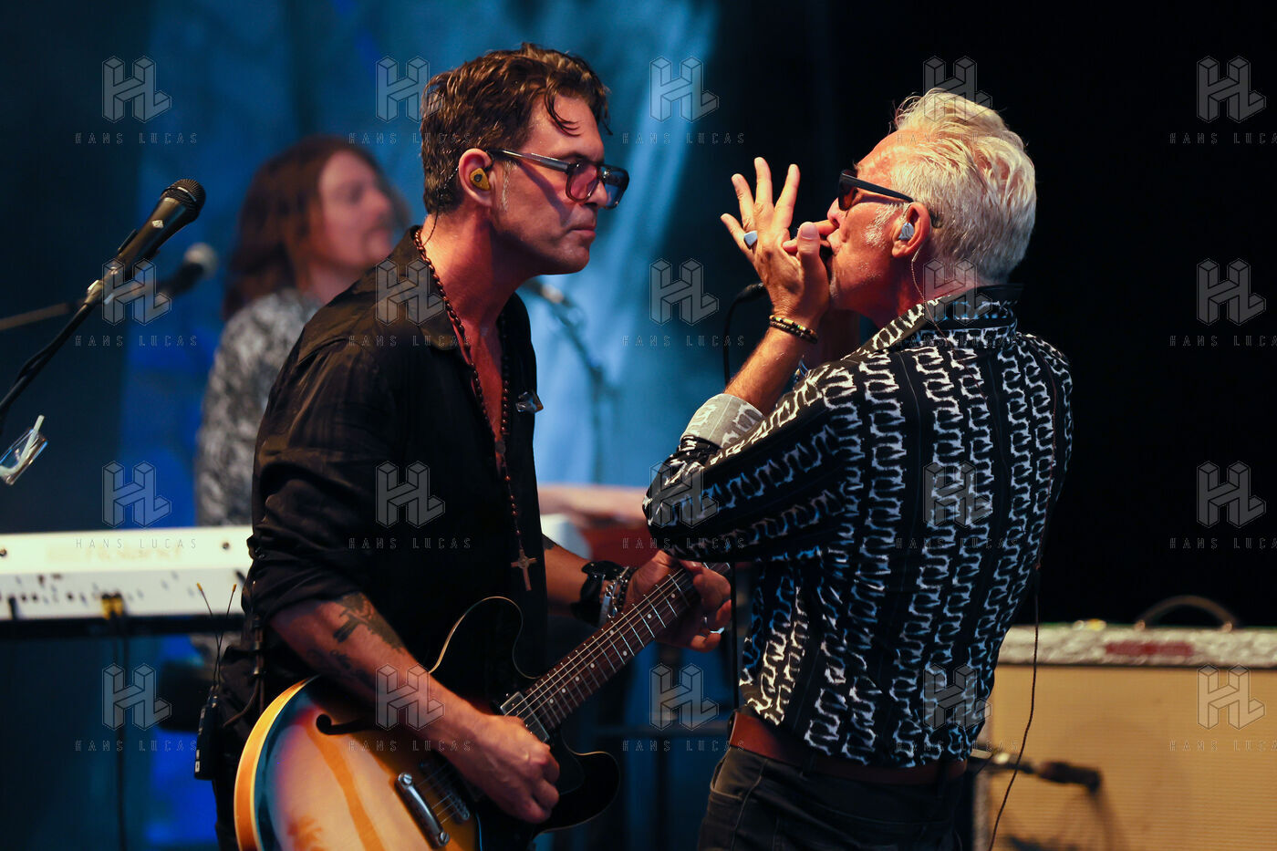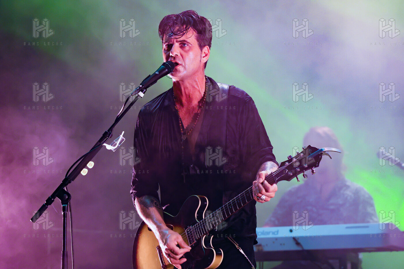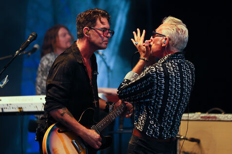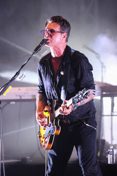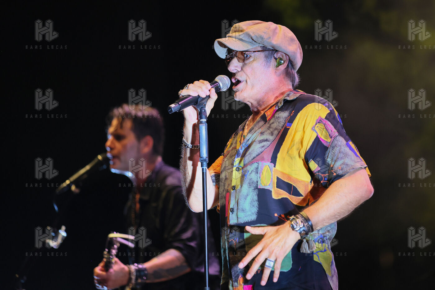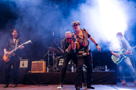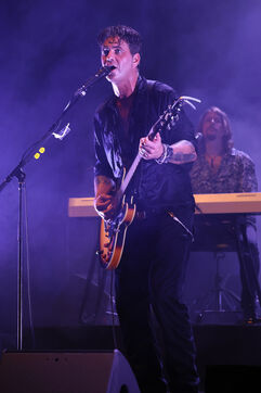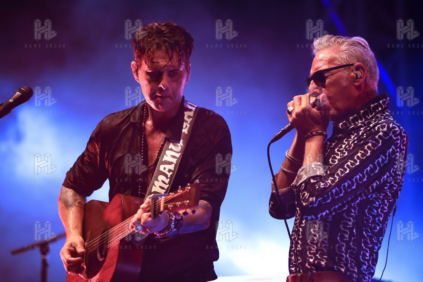 Singer guitarist and composer Manu Lanvin performs on stage at the Robinson Theatre, accompanied by the group The Devil Blues and his father Gerard Lanvin.