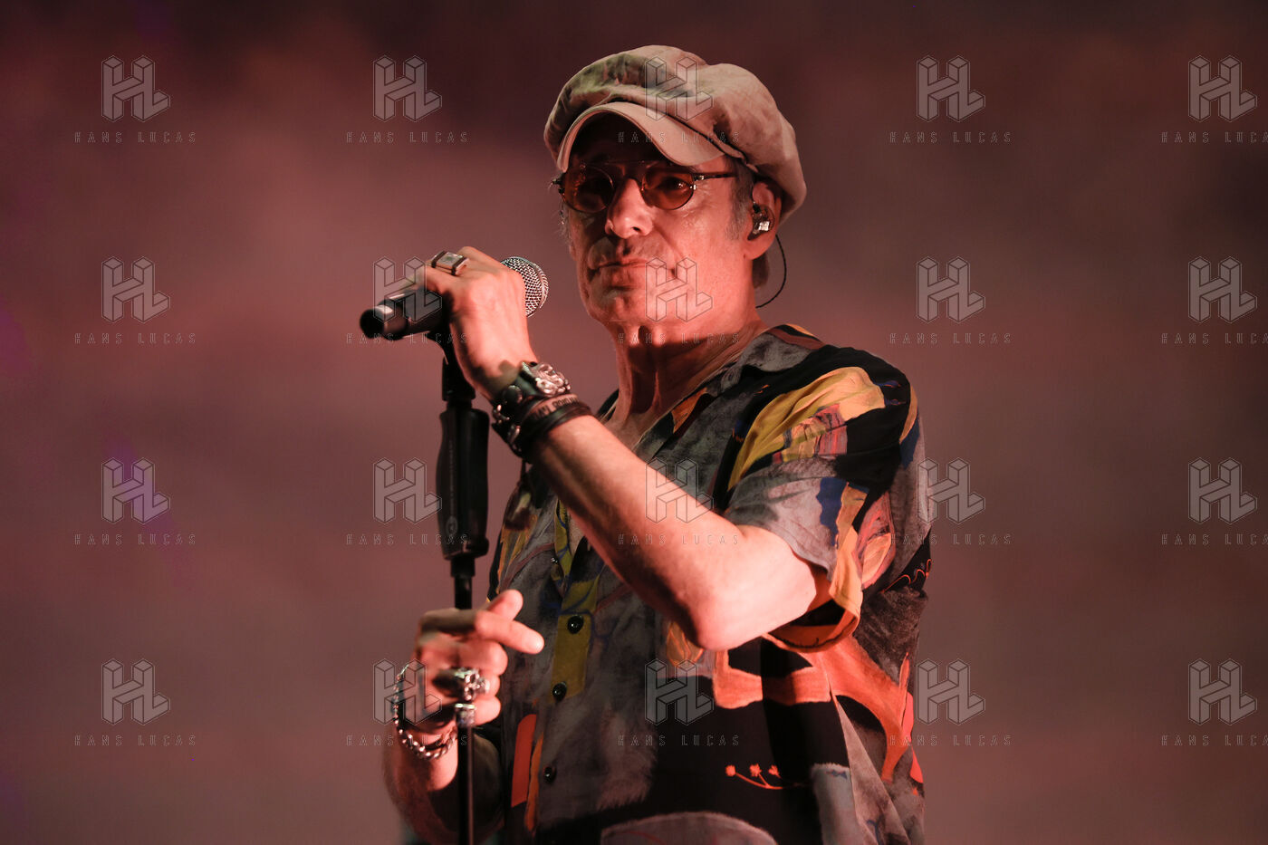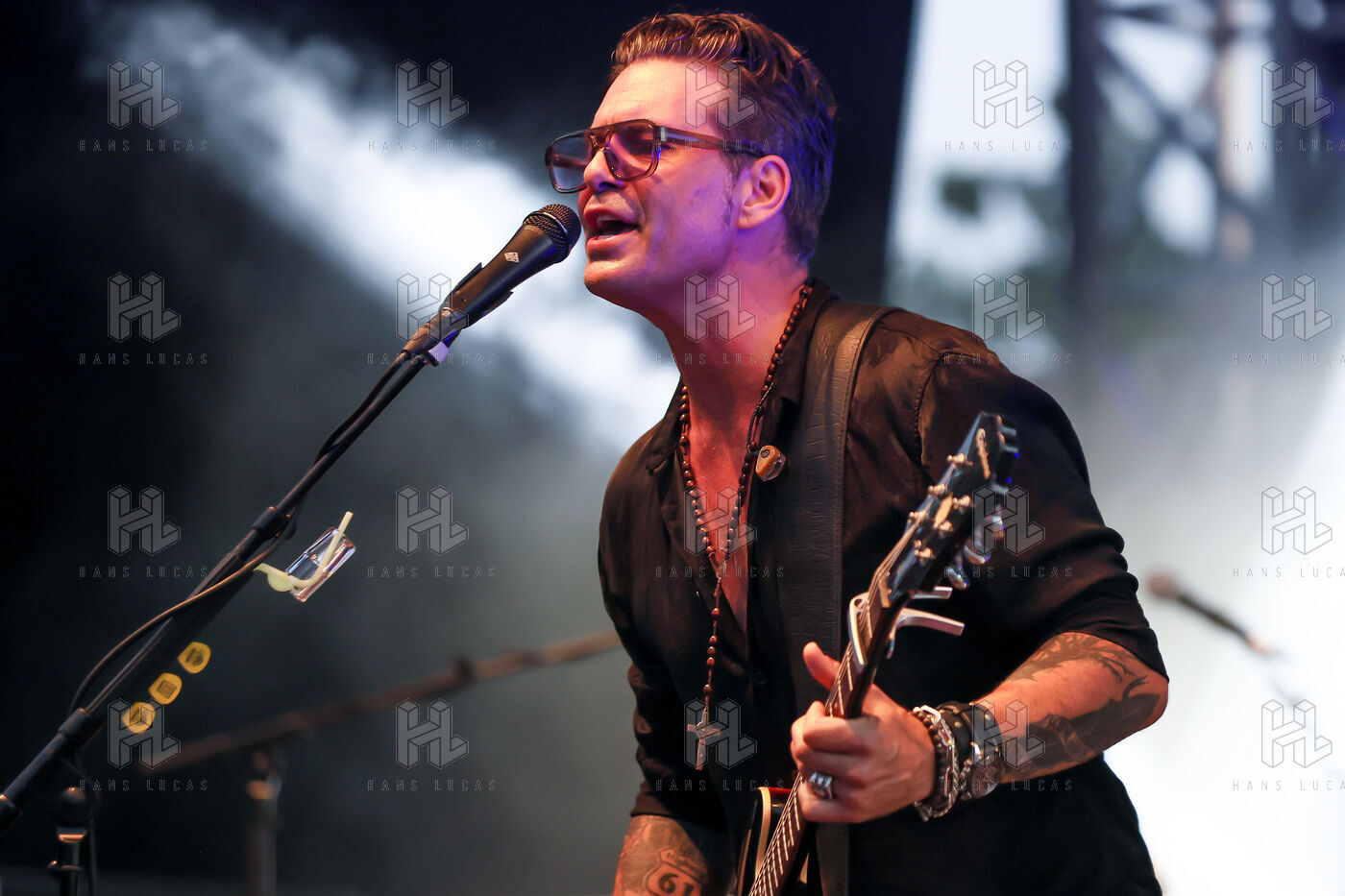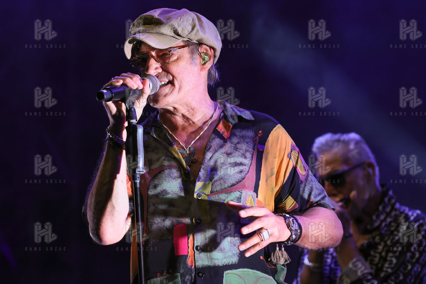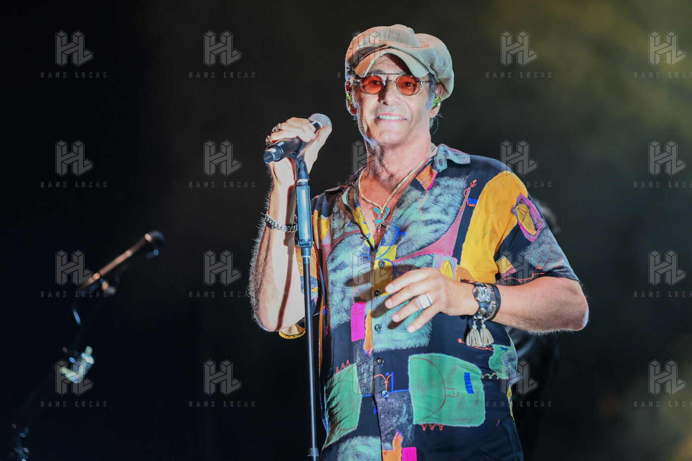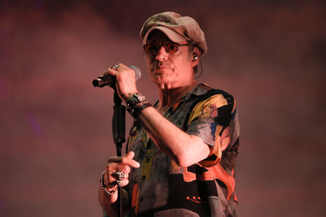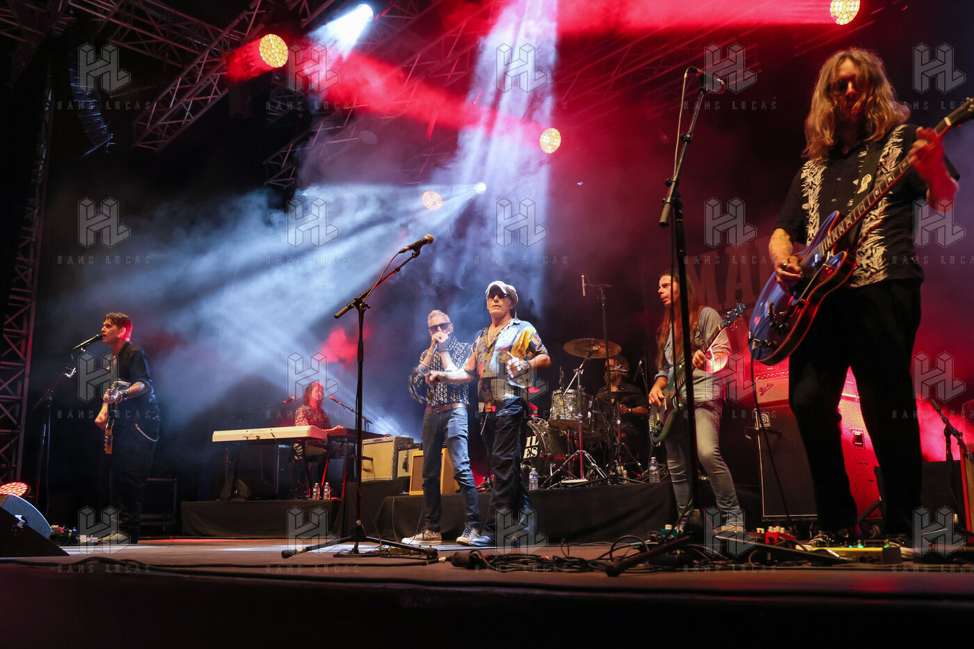 Singer guitarist and composer Manu Lanvin performs on stage at the Robinson Theatre, accompanied by the group The Devil Blues and his father Gerard Lanvin.