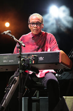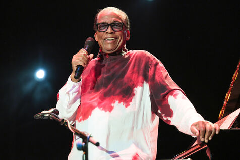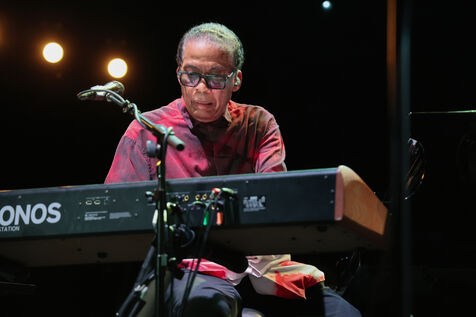 American jazz pianist, keyboardist, and composer Herbie Hancock performs at the 2025 Jazz à Juan Festival.