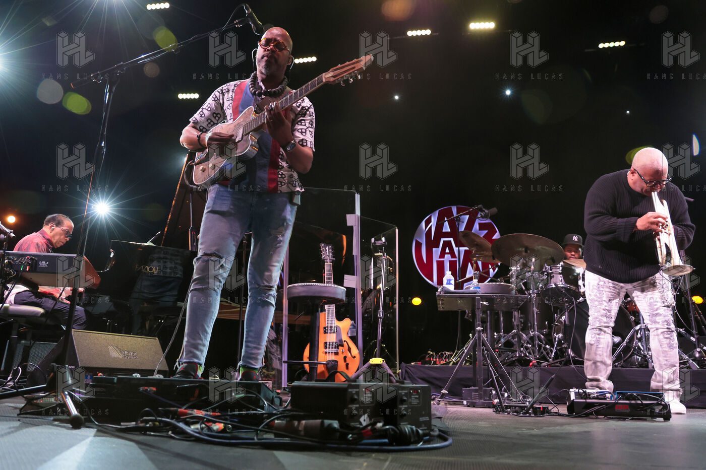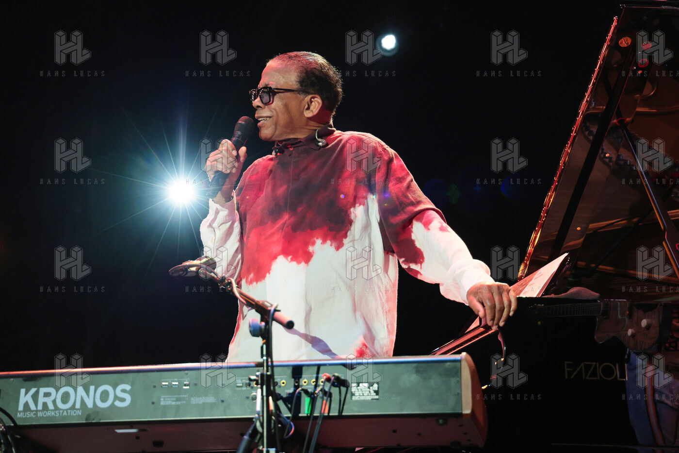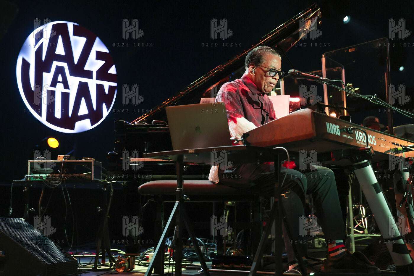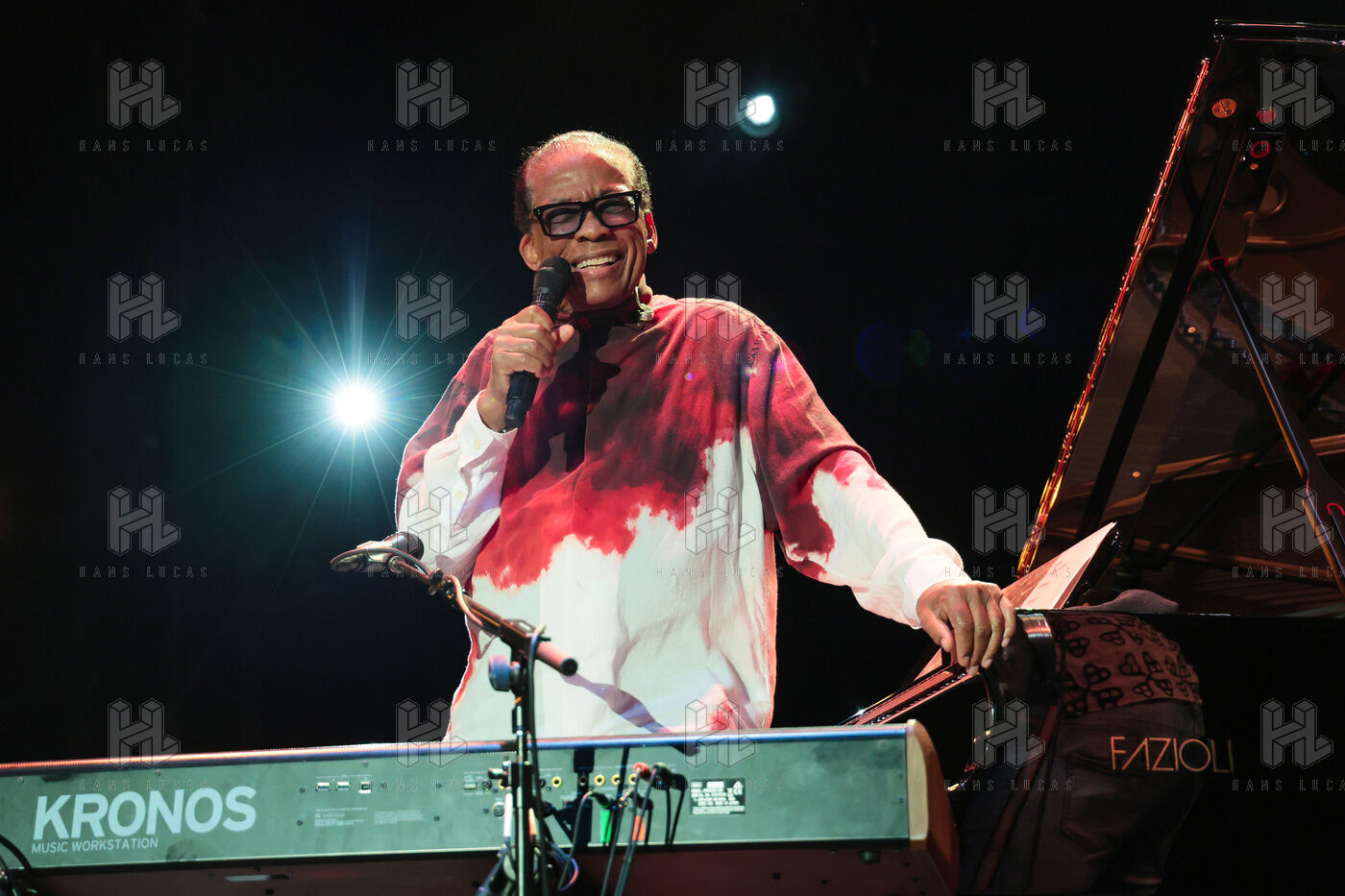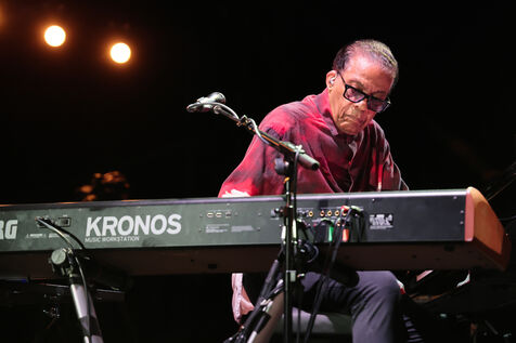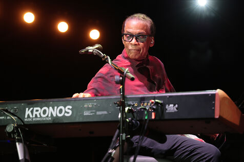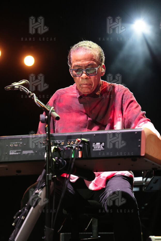Herbie Hancock, pianiste, clavieriste et compositeur americain de jazz se produit sur la scene du festival Jazz a Juan 2025.