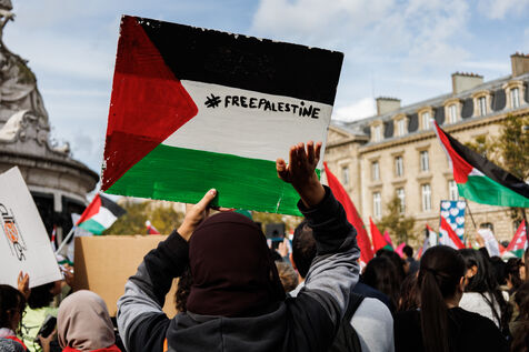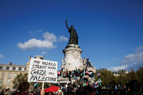 During the demonstration in support of Palestine organized on the Place de la République in Paris on October 22, 2023. The demonstration was authorized the day before, following a decision by the Conseil d'Etat ruling that bans on demonstrations in support of Palestine were illegal.